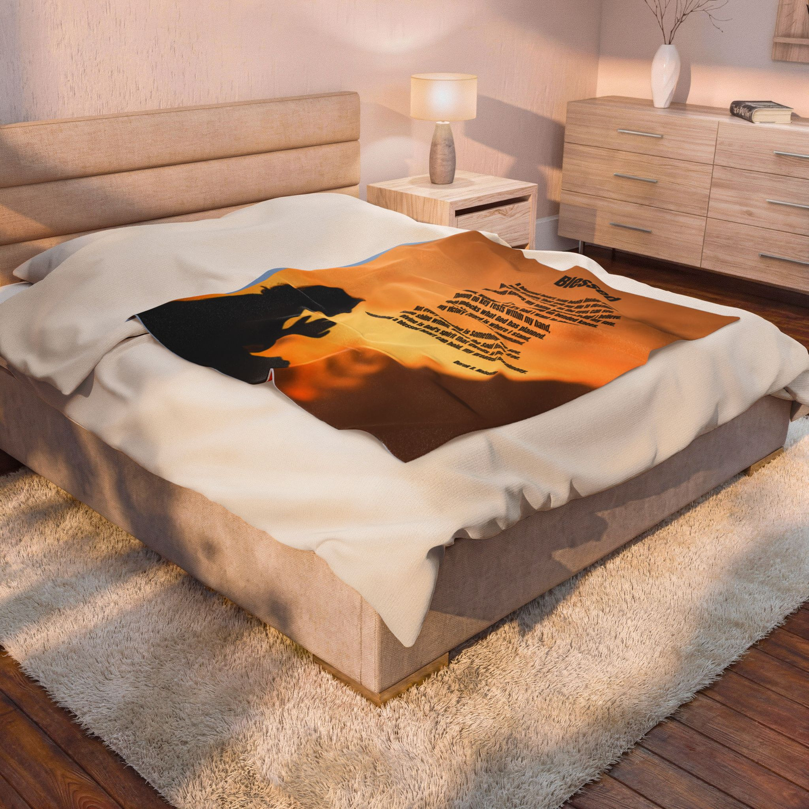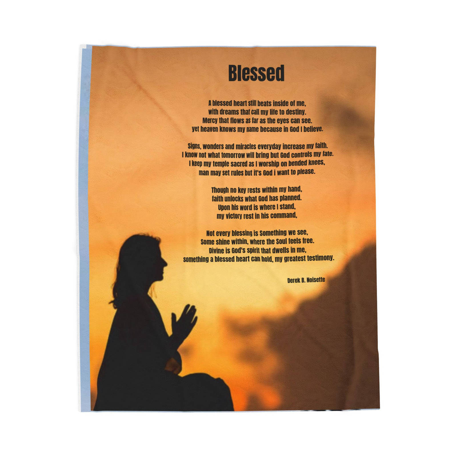 Faith-based blanket featuring soul-stirring poetry celebrating love, gratitude, and divine blessing,