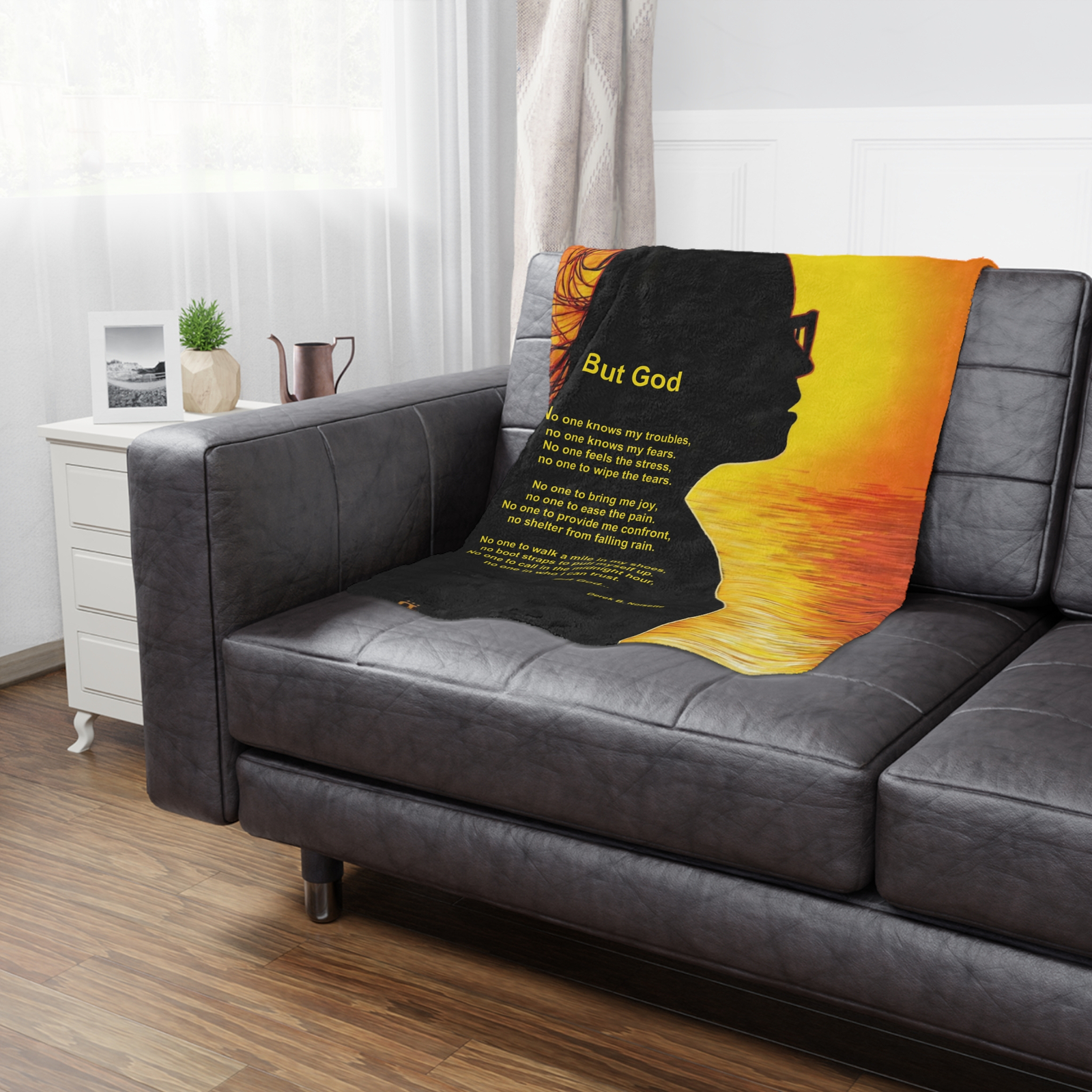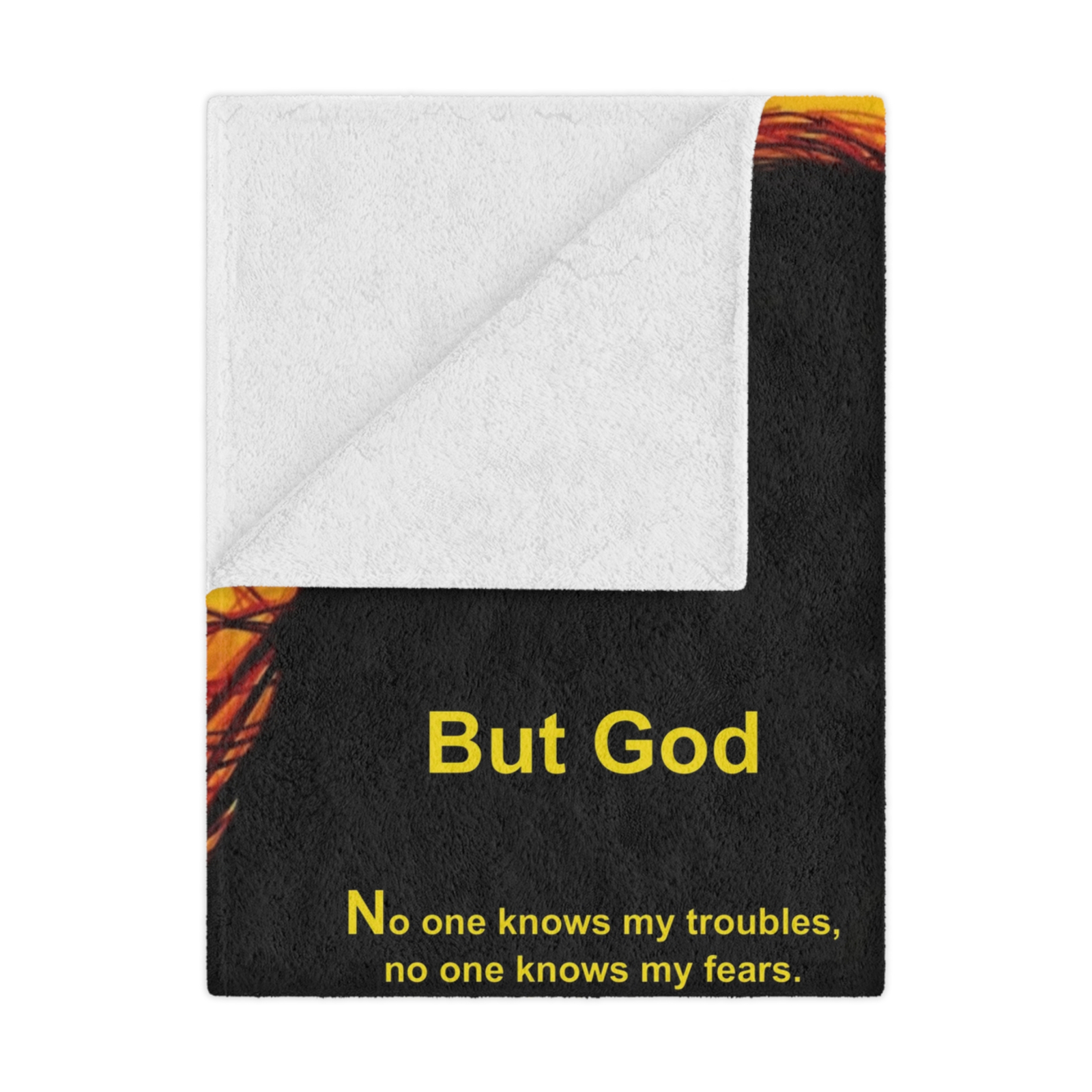 Wrap yourself in comfort and inspiration with this beautiful Plush Blanket. Featuring a vibrant, high-detail print of a silhouette of a woman and the poem “But God”. This blanket brings warmth and creativity into any space.