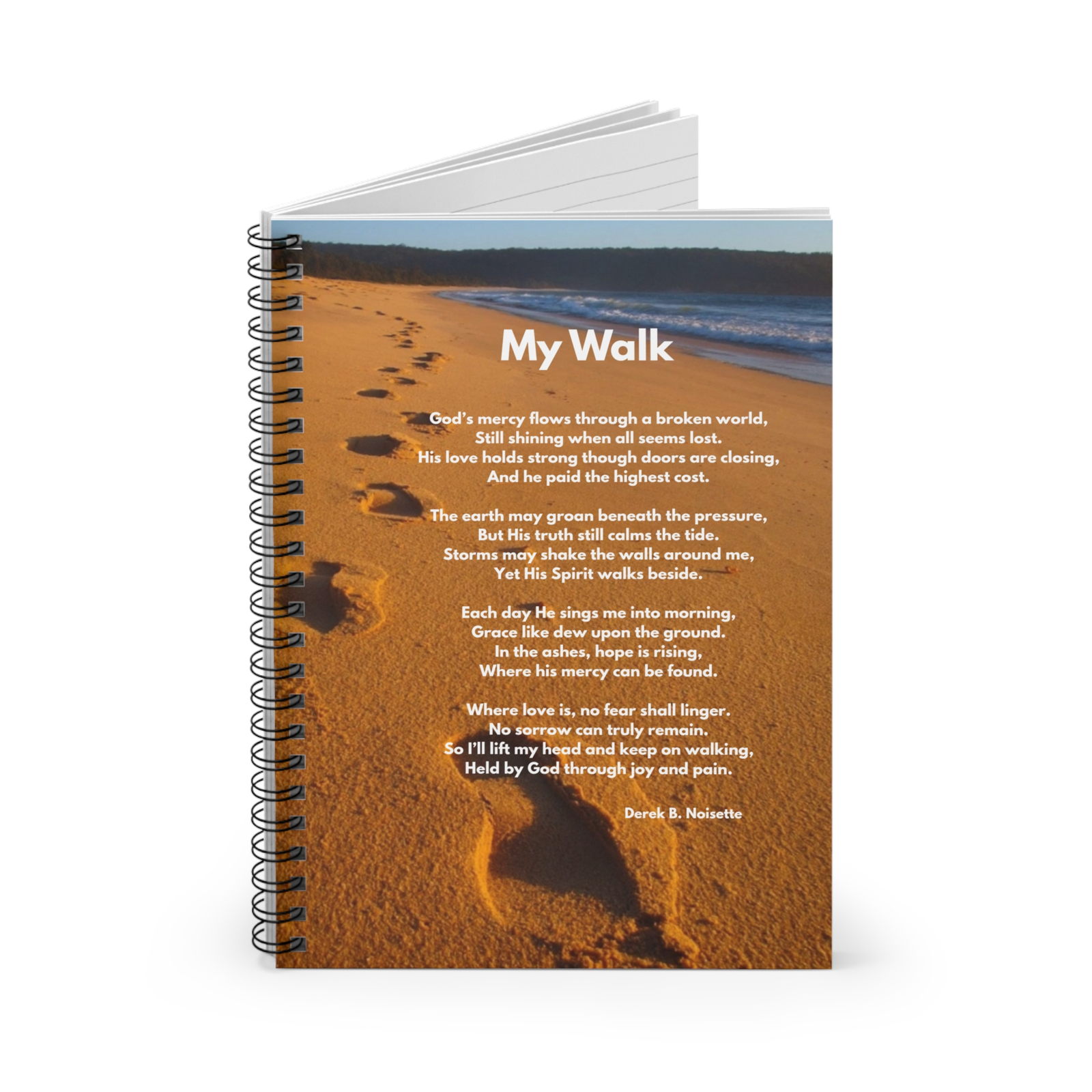 Elevate your writing experience with the My Walk Spiral Notebook, where functionality meets faith. Featuring the powerful, soul-stirring poem “My Walk” on the vibrant front cover, this notebook is more than just a tool for notes, it’s a daily reminder of God’s unwavering presence, love, and mercy.