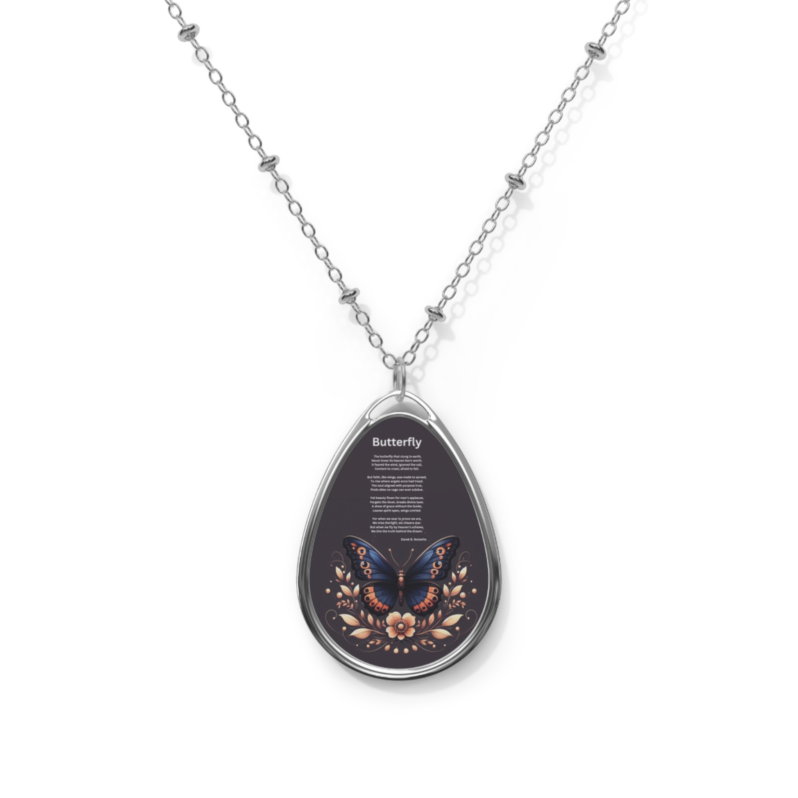 Let every heartbeat be a reminder of who you are and whose you are with the Butterfly Inspirational Oval Necklace from the Spiritual Desires Collection by Derek B. Noisette. This elegantly designed pendant is more than jewelry, it’s a daily affirmation of spiritual transformation, divine guidance, and the quiet strength that comes from faith.
