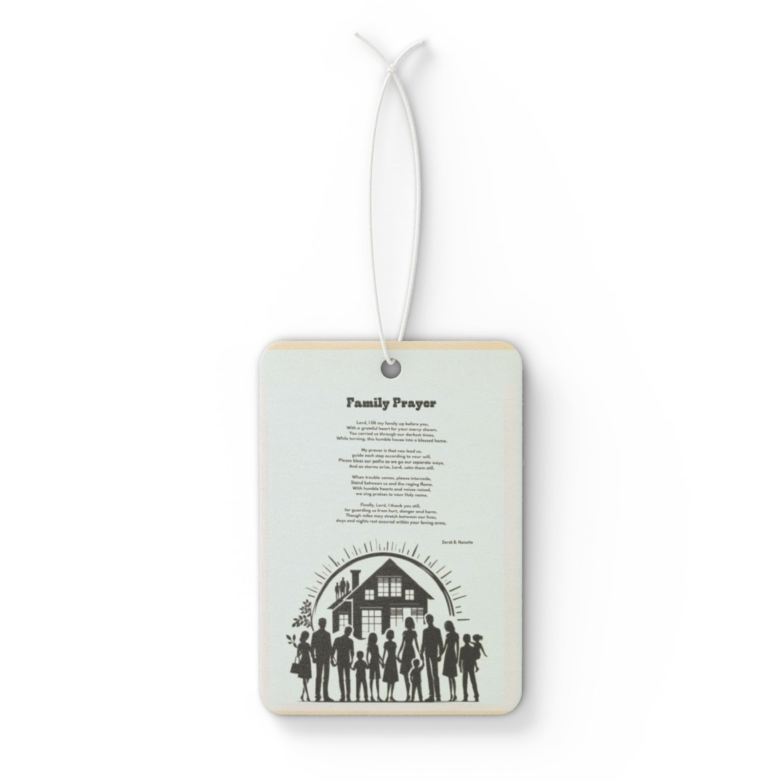 The full poem by Derek B. Noisette from the Spiritual Desires Collection is printed clearly, allowing the words to serve as a daily reminder that God’s love and protection surround the family wherever life leads. Whether driving to work, running errands, or traveling long distances, this air freshener offers both a pleasant fragrance and a moment of spiritual reflection.