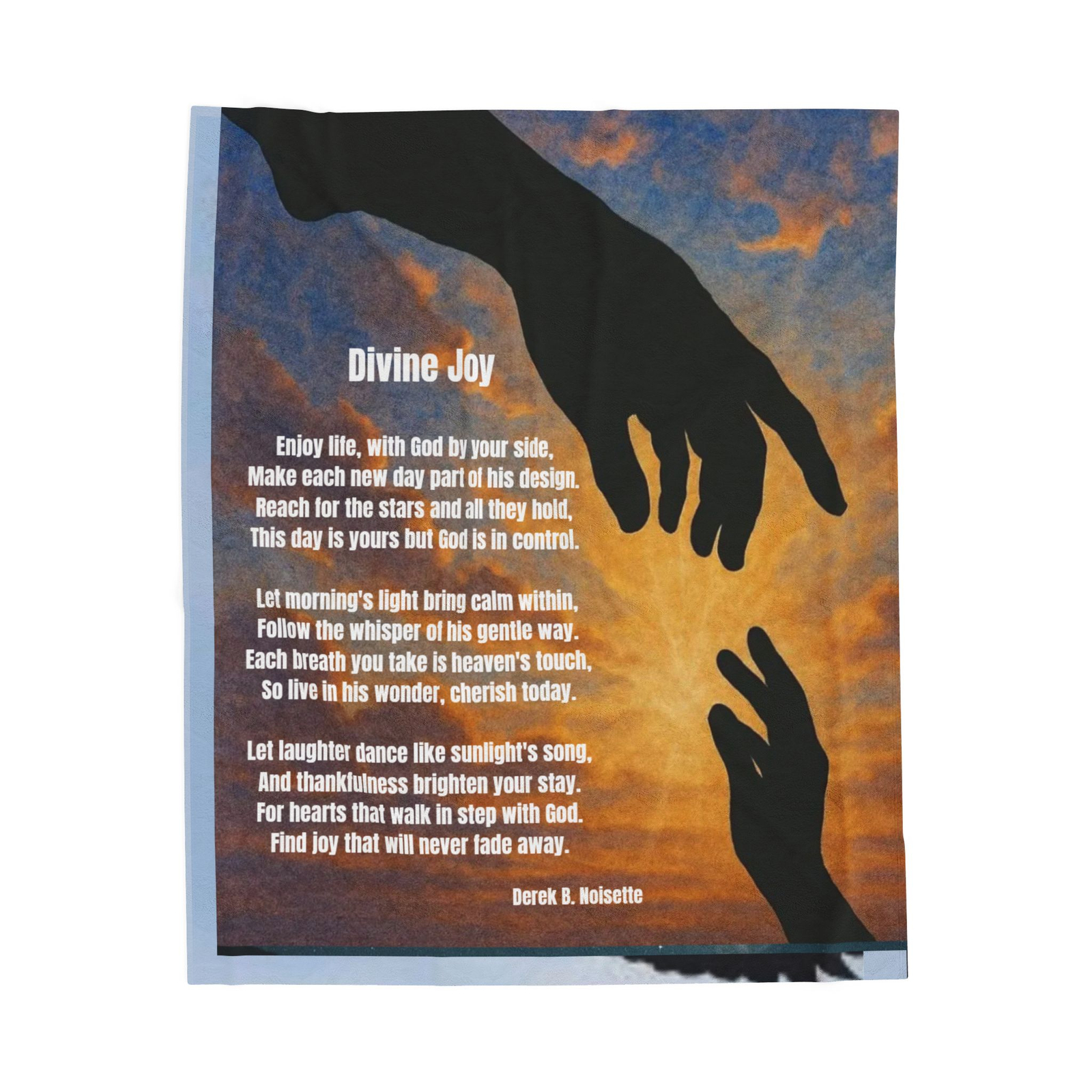 Made with ultra-soft velveteen polyester and printed in vivid, high-resolution detail, this inspirational blanket features the powerful poem “Divine Joy” as a declaration of gratitude, trust, and daily celebration. Whether wrapped around you during prayer, journaling, or quiet evenings of reflection, this blanket offers not only physical warmth but spiritual uplift rooted in God’s faithful presence.