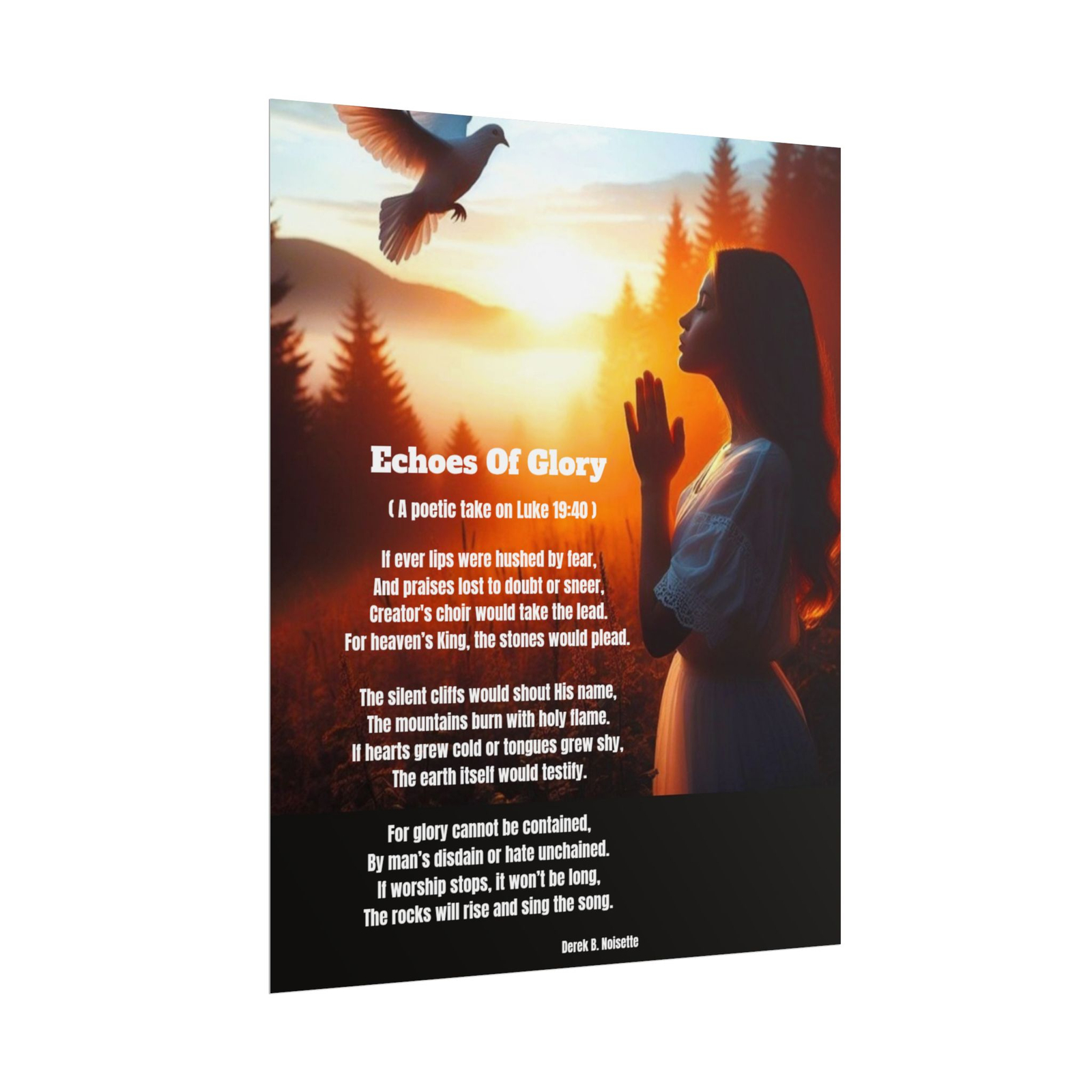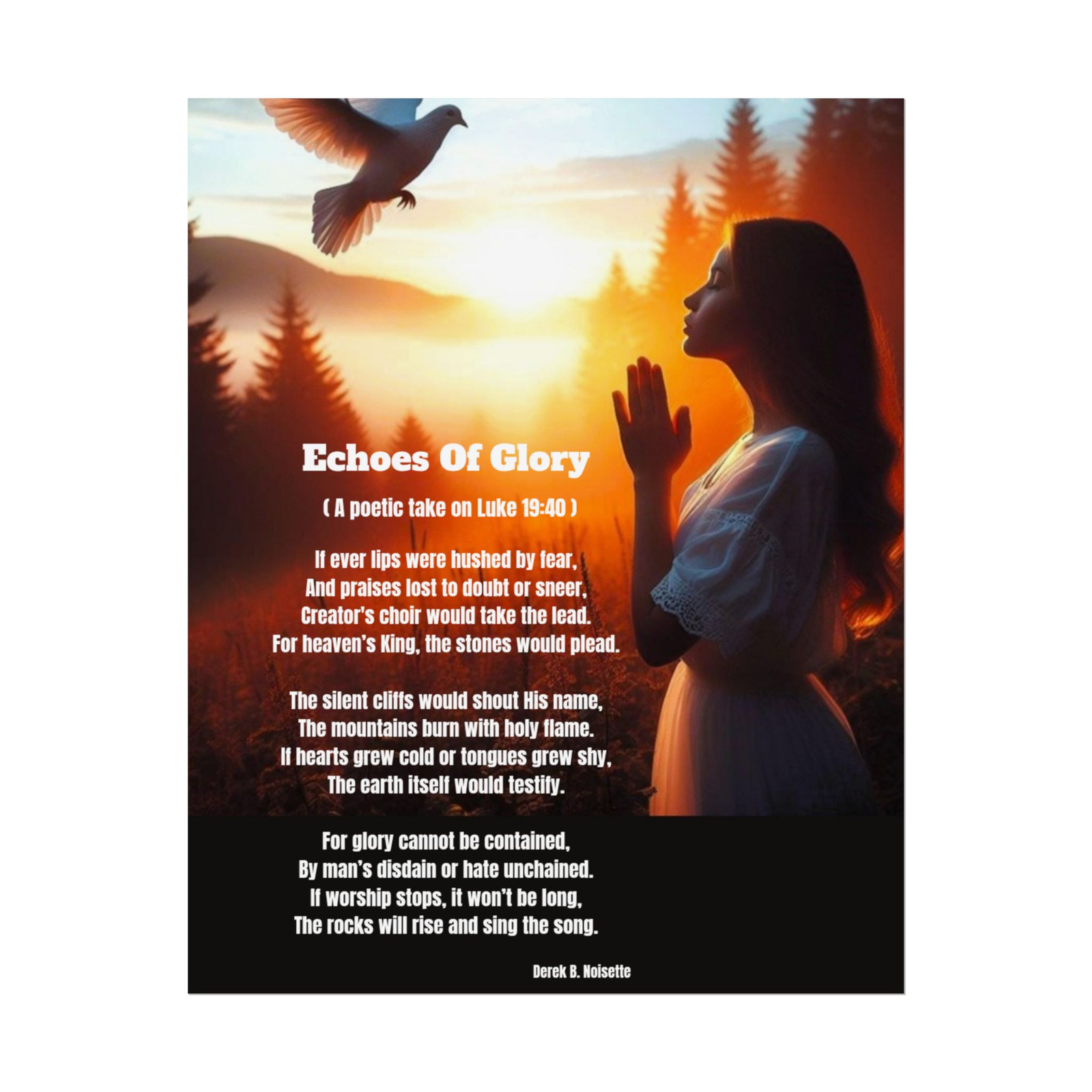 This inspiring poster serves as a visual declaration of worship and faith. With the image of prayer rising heavenward and the message of “Echoes of Glory,” it reminds us that praise belongs to God alone—alonalonalonalonalonandif, our voices grow quiet, creation itself will proclaim His glory.