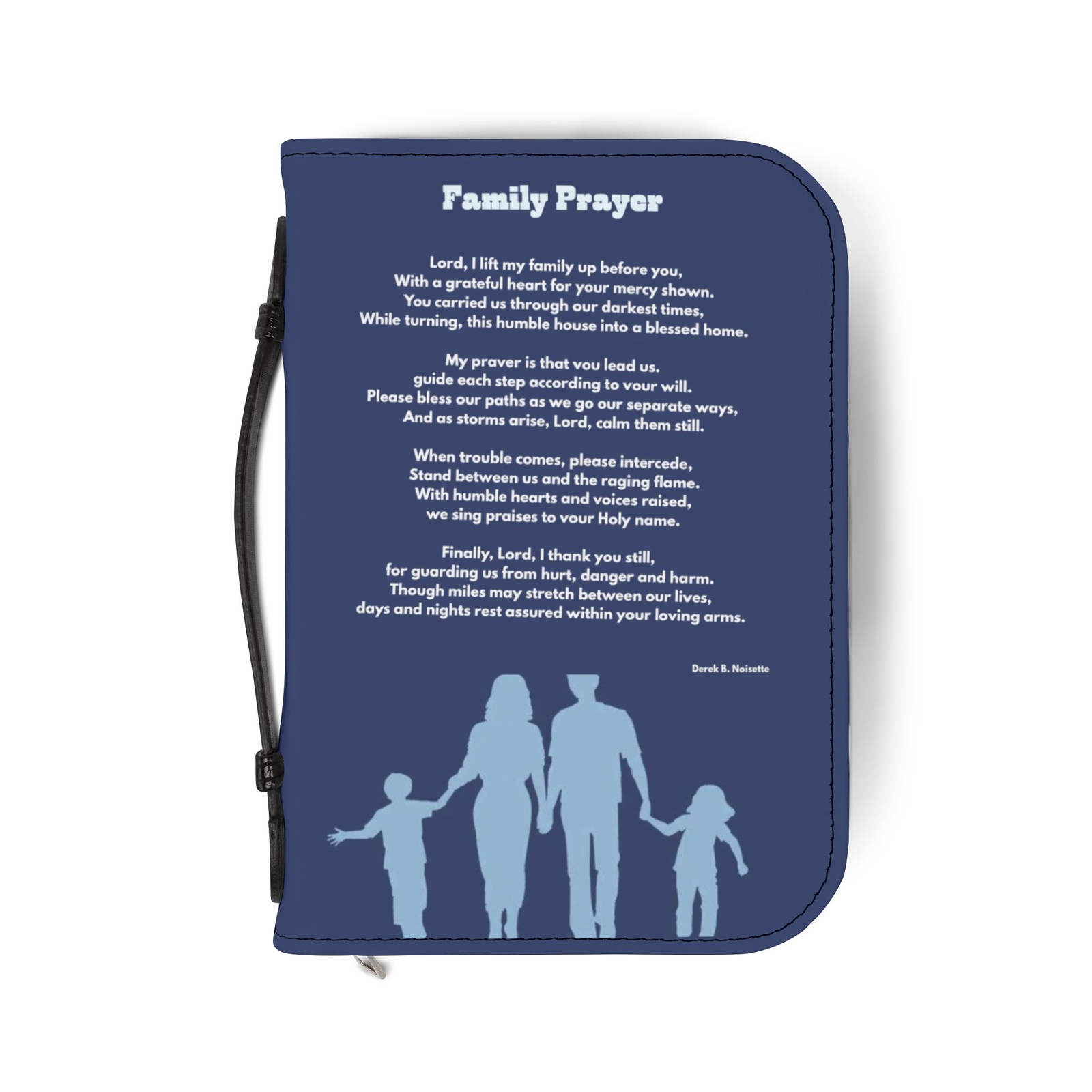 Celebrate the power of prayer and the blessing of family with the Family Prayer Inspirational Bible Cover. This meaningful design features the silhouette of a united family standing together beneath the full poem Family Prayer, symbolizing a household built on faith, love, and devotion to God.