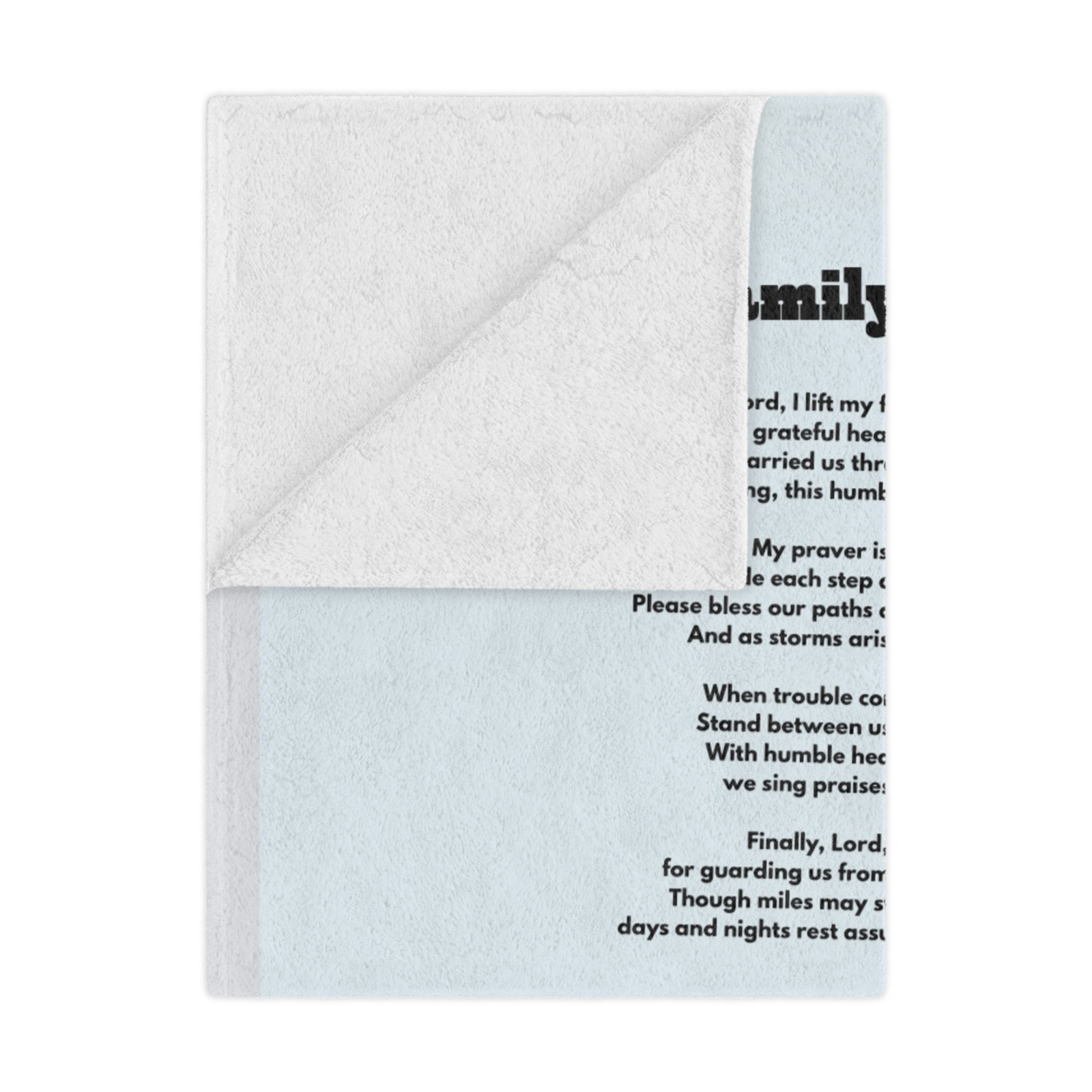 Let “Family Prayer” Plush Blanket be your reminder that no matter what life brings, your family is always wrapped in God’s faithful embrace.