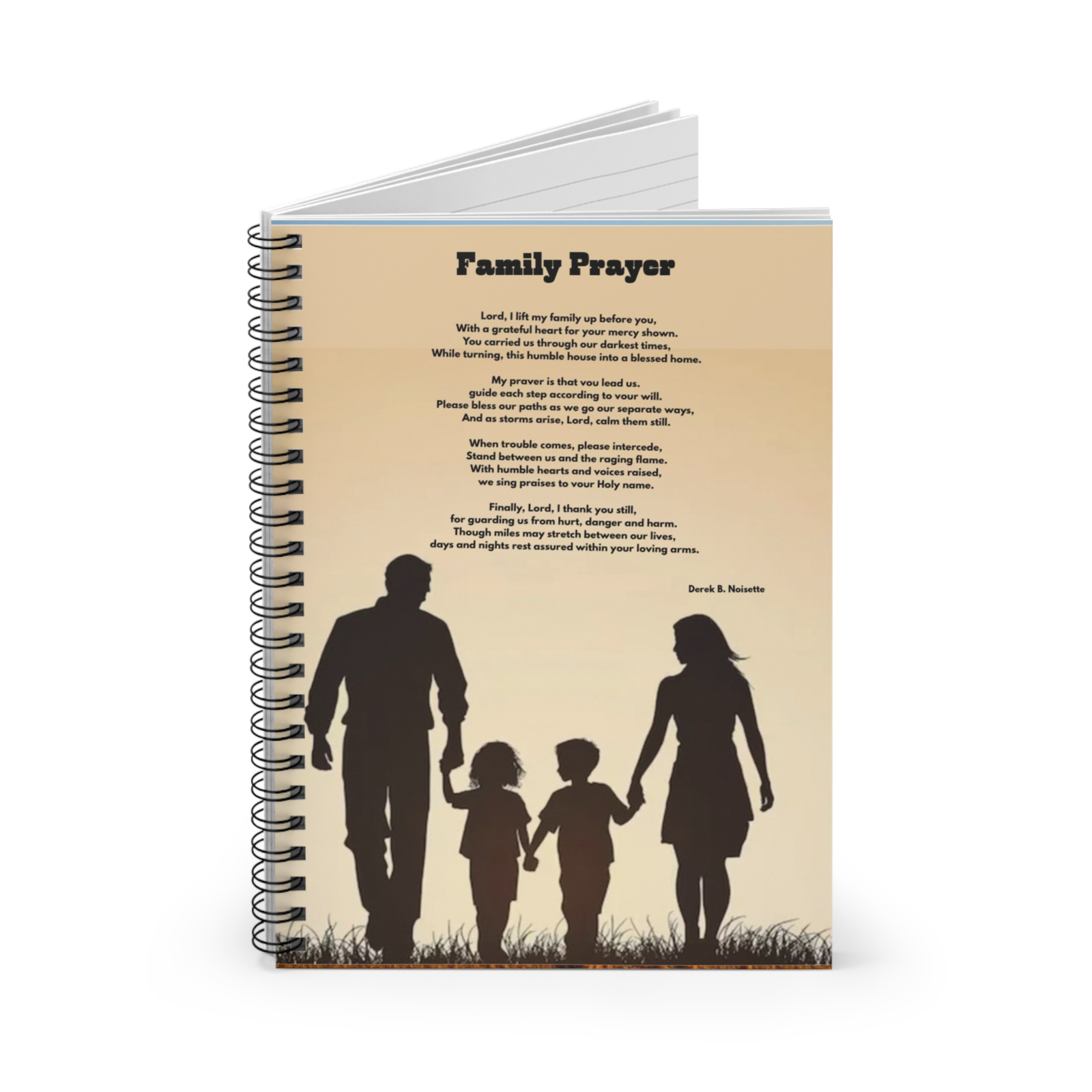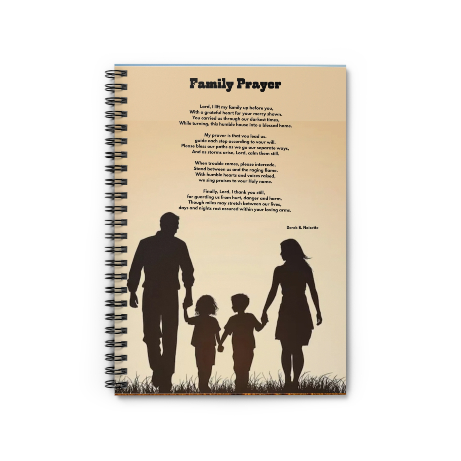 Elevate your writing experience with the Family Prayer Spiral Notebook, where functionality meets faith. Featuring the powerful, soul-stirring poem “Family Prayer” on the warm tan front cover, this notebook is more than just a tool for notes, it’s a daily reminder of God’s unwavering presence, love, and mercy.