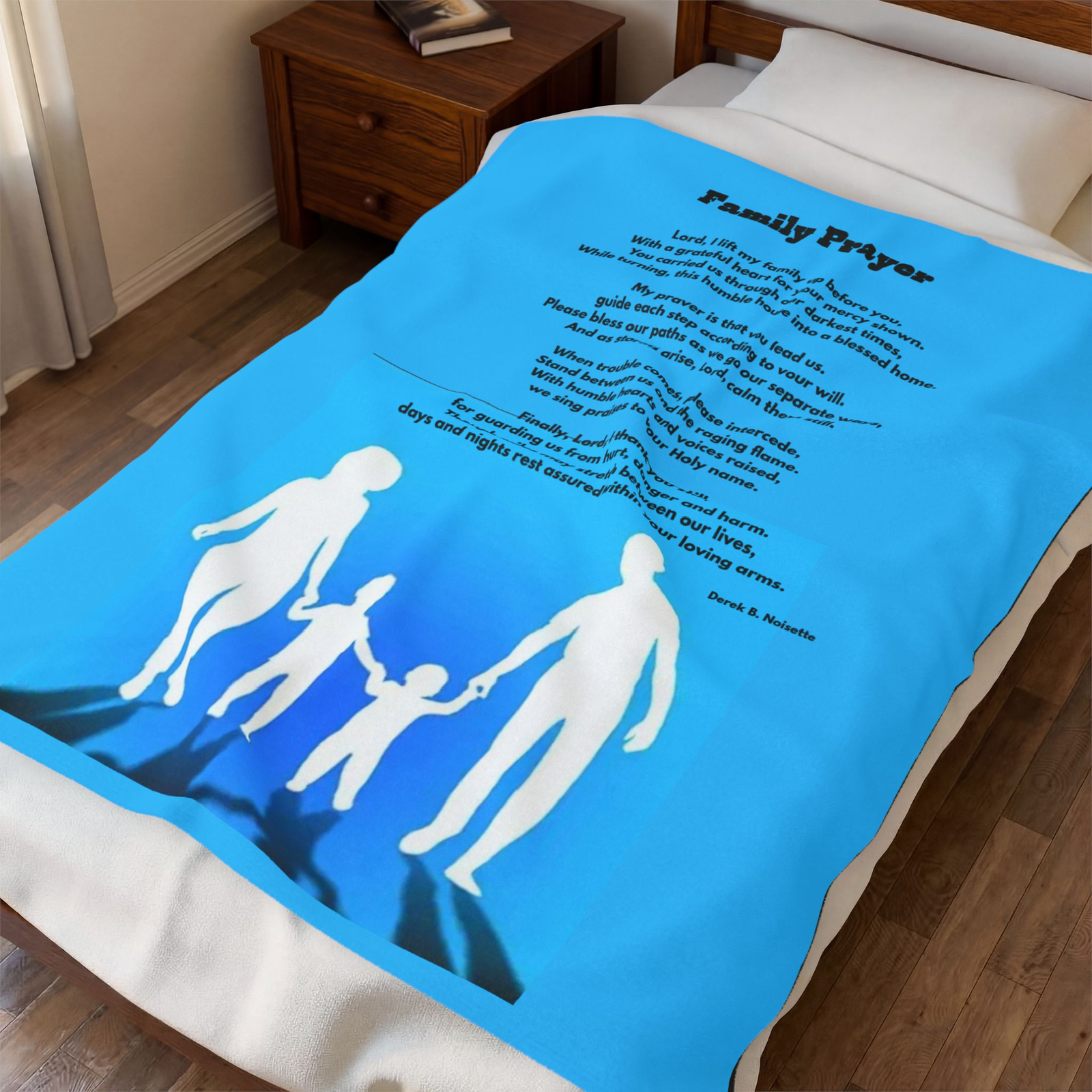 Faith-based blanket featuring the heartfelt poem Family Prayer and an elegant spiritual design