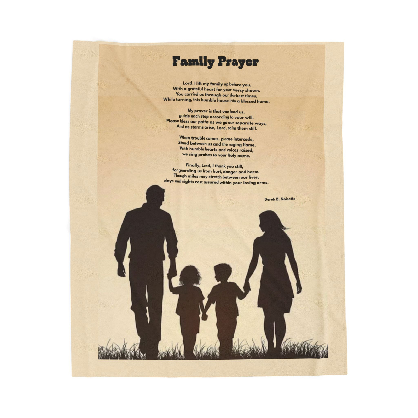 Faith-based blanket featuring the heartfelt poem Family Prayer and an elegant spiritual design