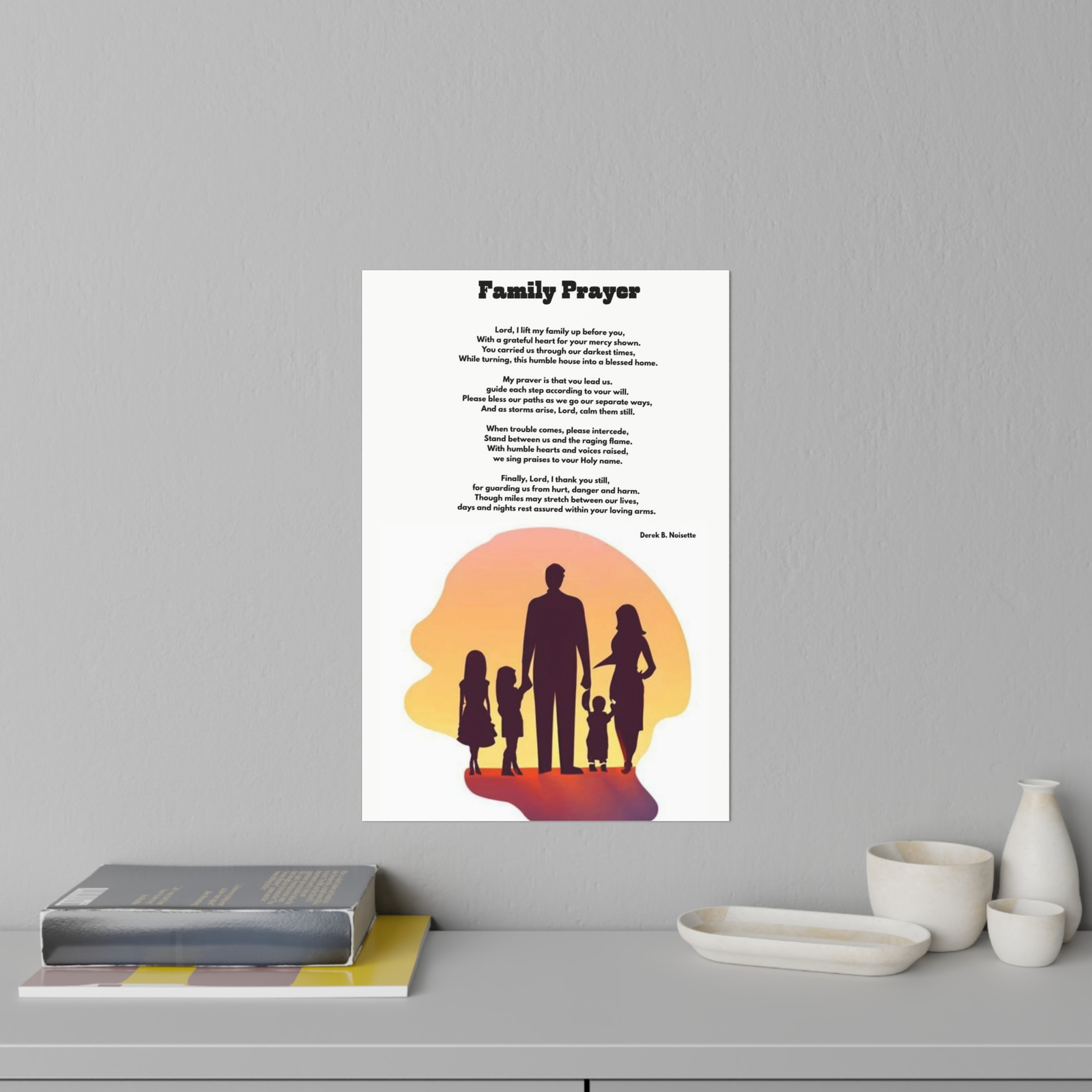 Poem: Family Prayer (positioned above the family artwork)