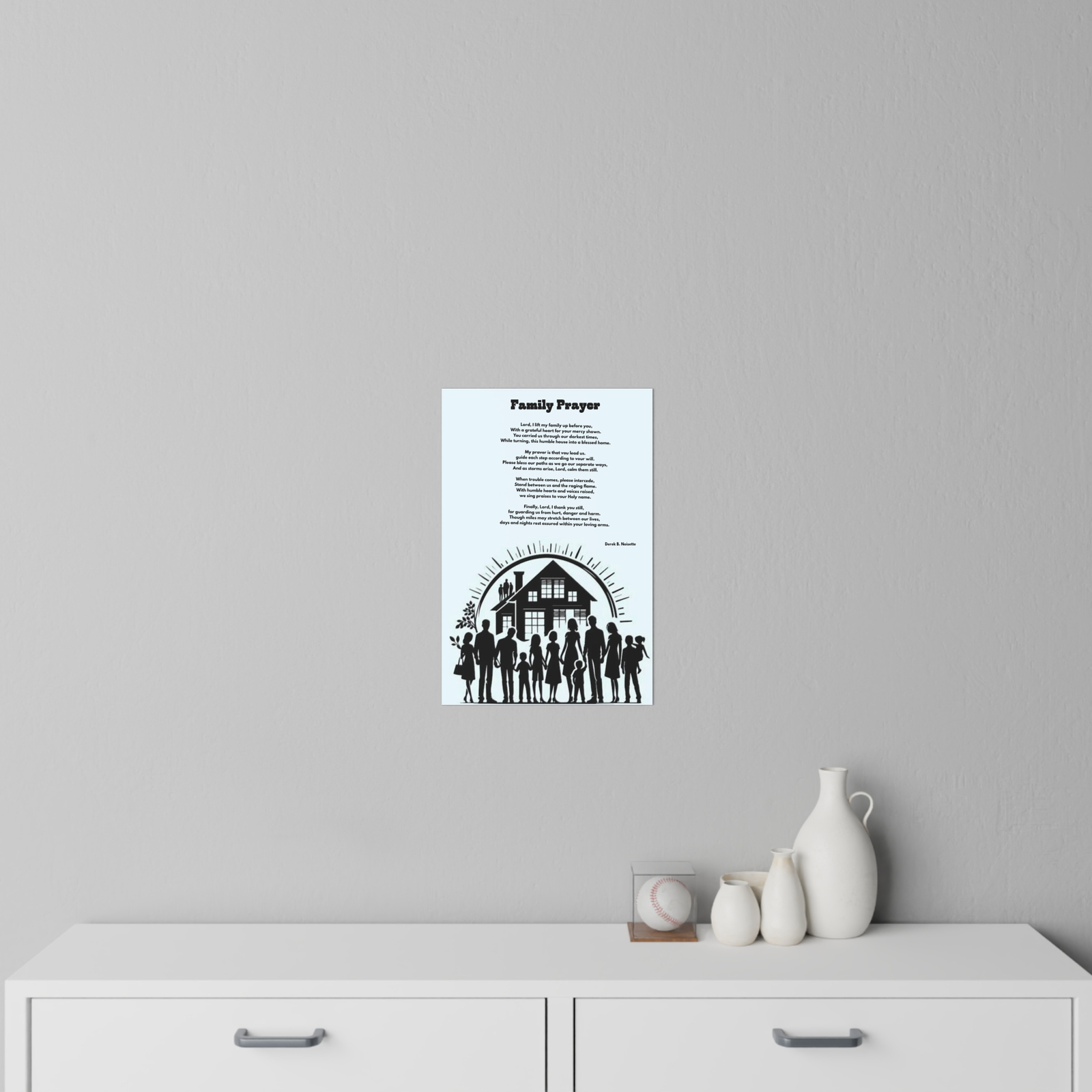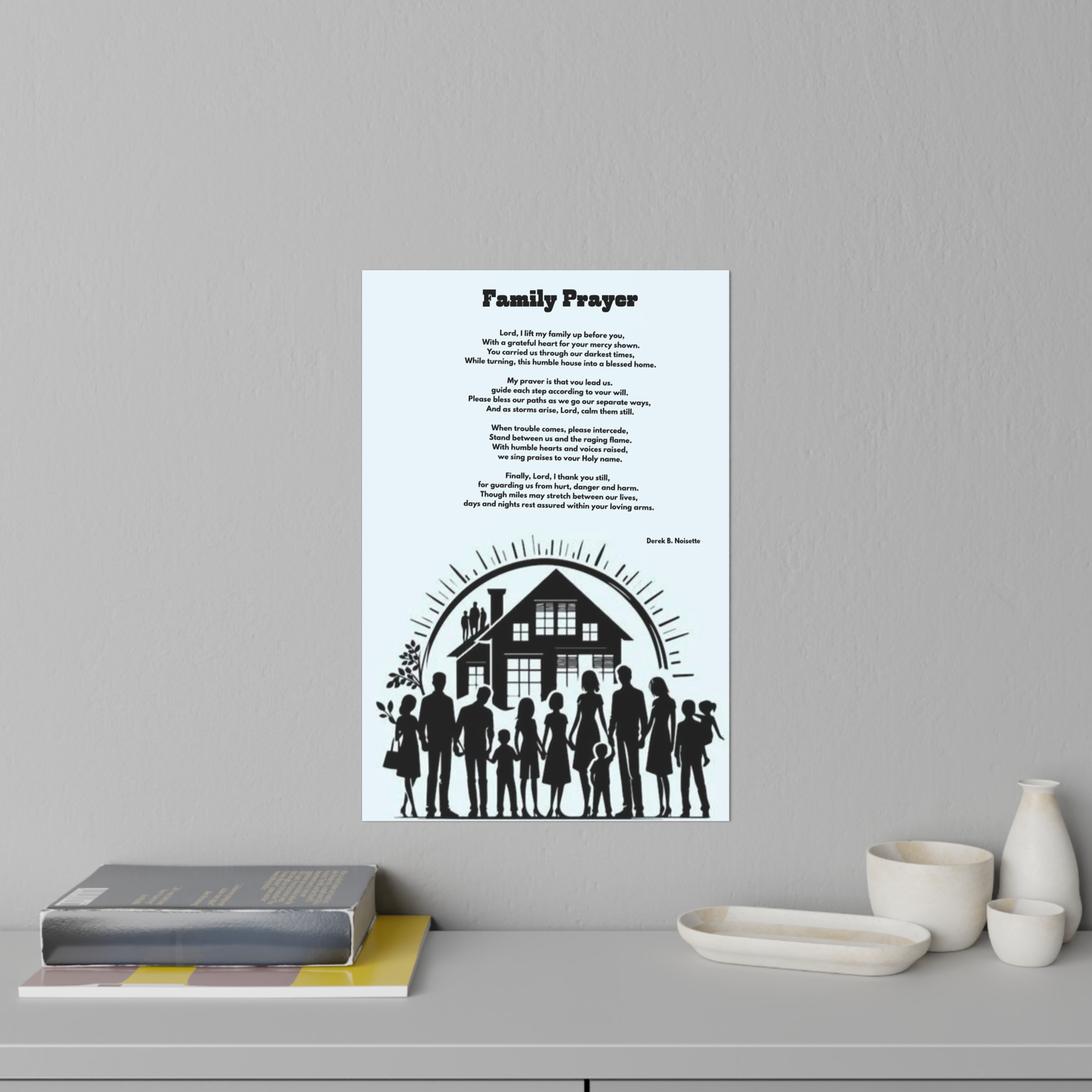 Poem: Family Prayer (positioned above the family artwork)