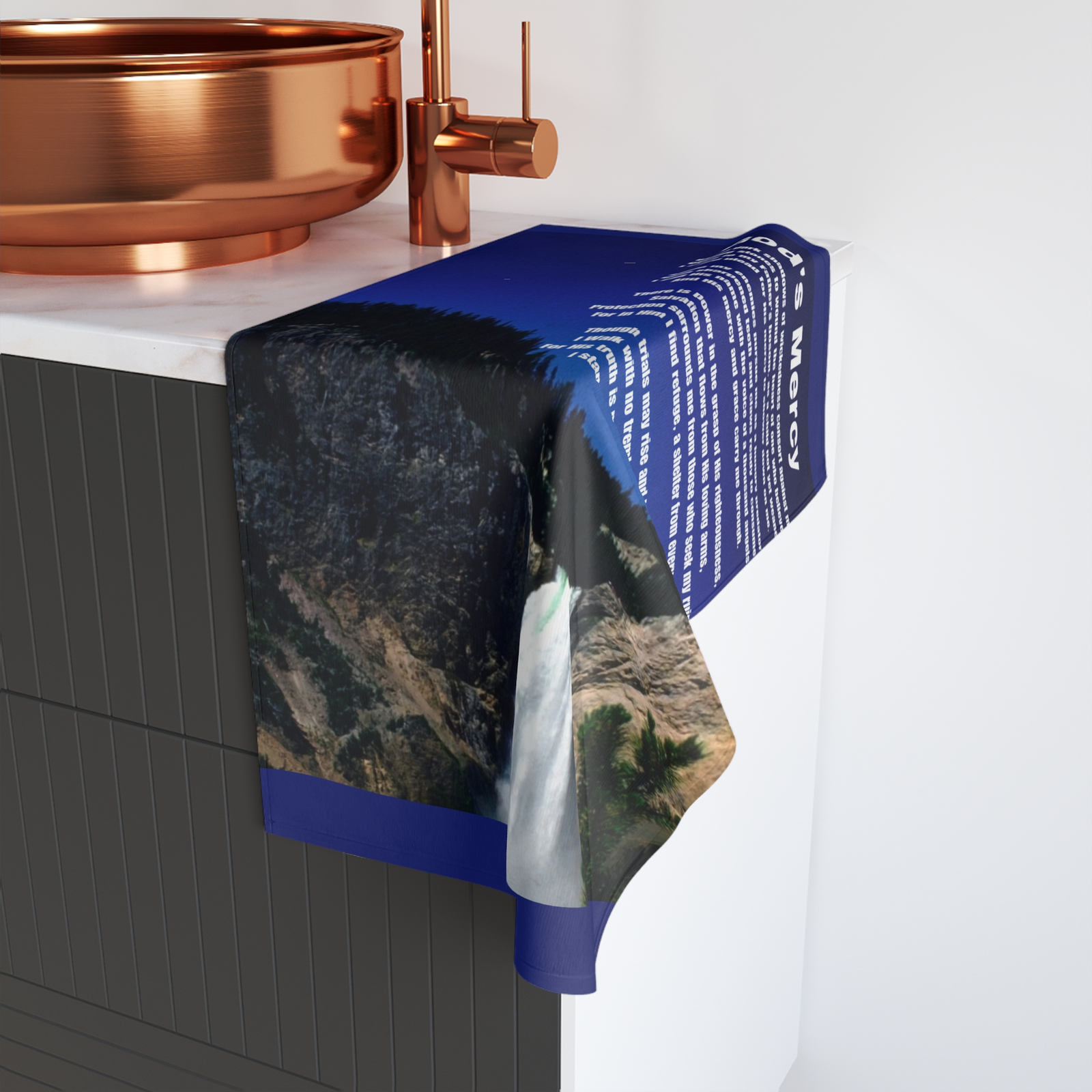 Featuring the powerful poem God’s Mercy by Derek B. Noisette, this towel carries a message of courage, trust, and divine rescue in life’s most difficult moments. Whether drying your hands, preparing a meal, or pausing in quiet thought, the words on this towel surround you with faith and renew your spirit.