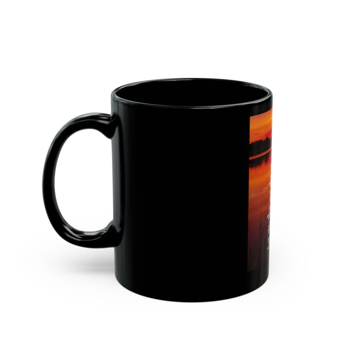 Crafted from glossy black ceramic with a high-resolution, fade-resistant print, this Praise Collection mug is available in 11 oz and 15 oz sizes. It is microwave safe, dishwasher safe, BPA-free, and lead-free. To preserve the integrity of the artwork, gentle hand washing with mild soap is recommended.