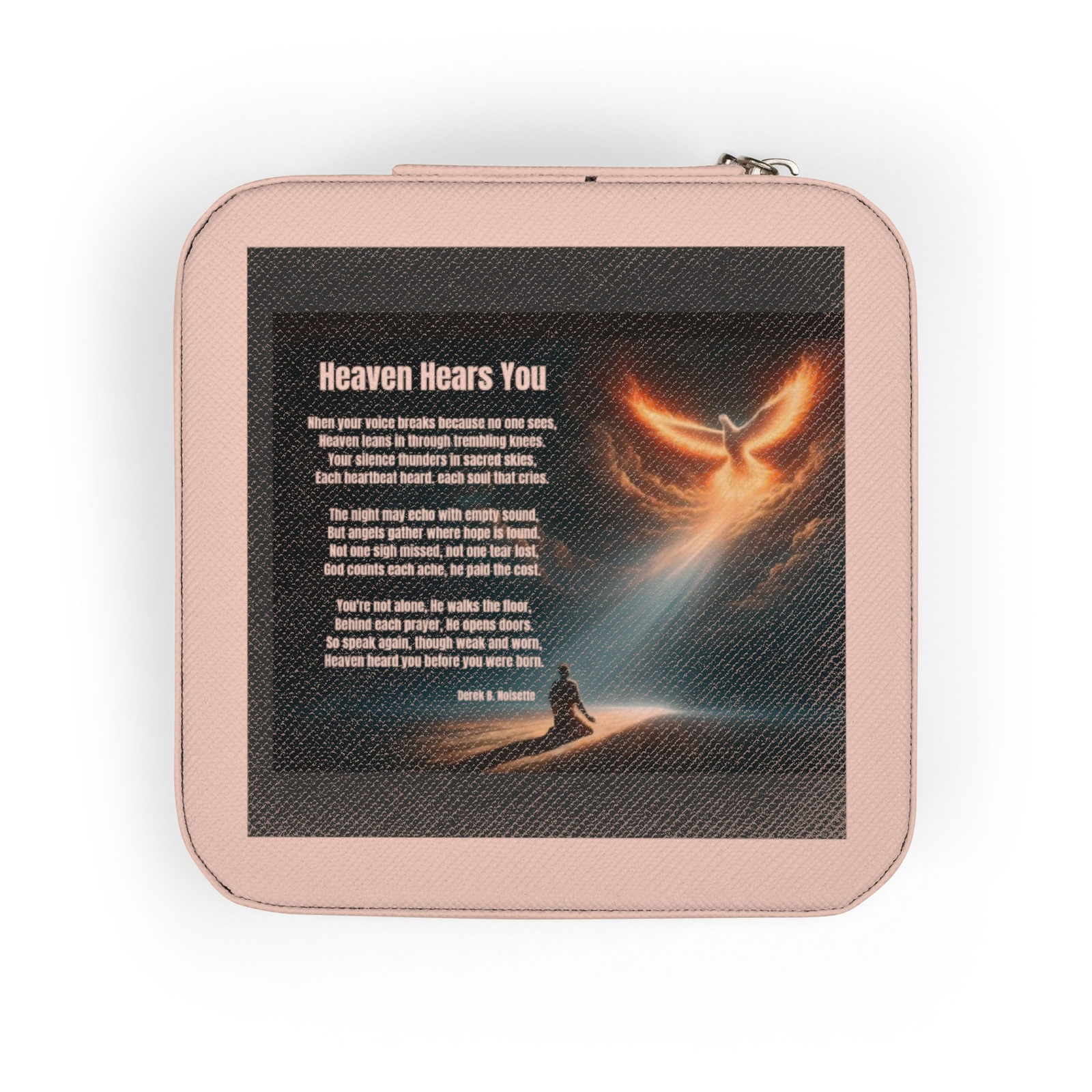 Adorning this case is the full poem “Heaven Hears You” by Derek B. Noisette, a powerful reminder that no matter the pressure or storm, we are sustained by mercy: