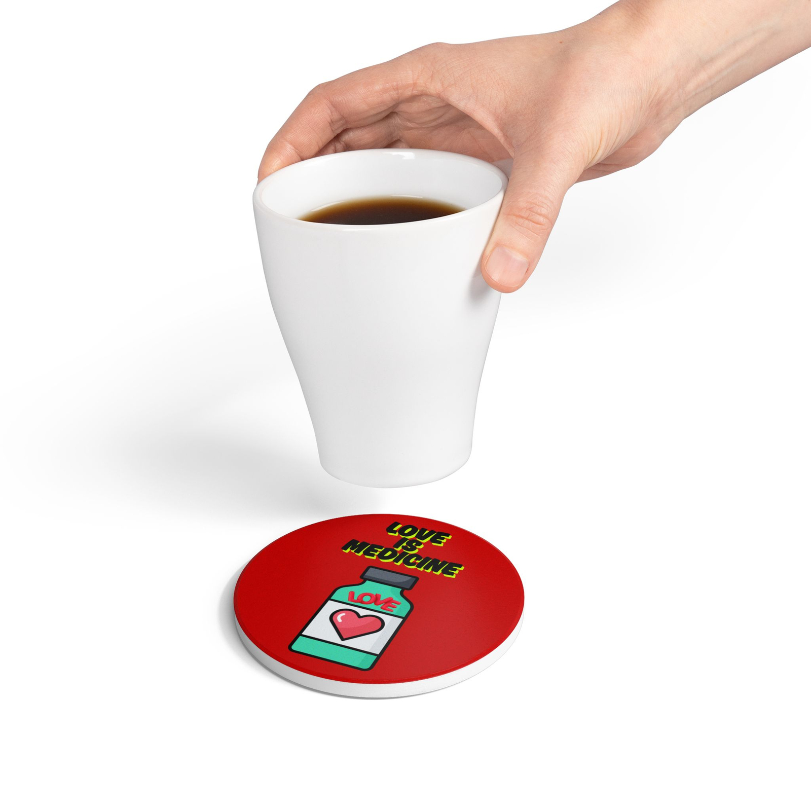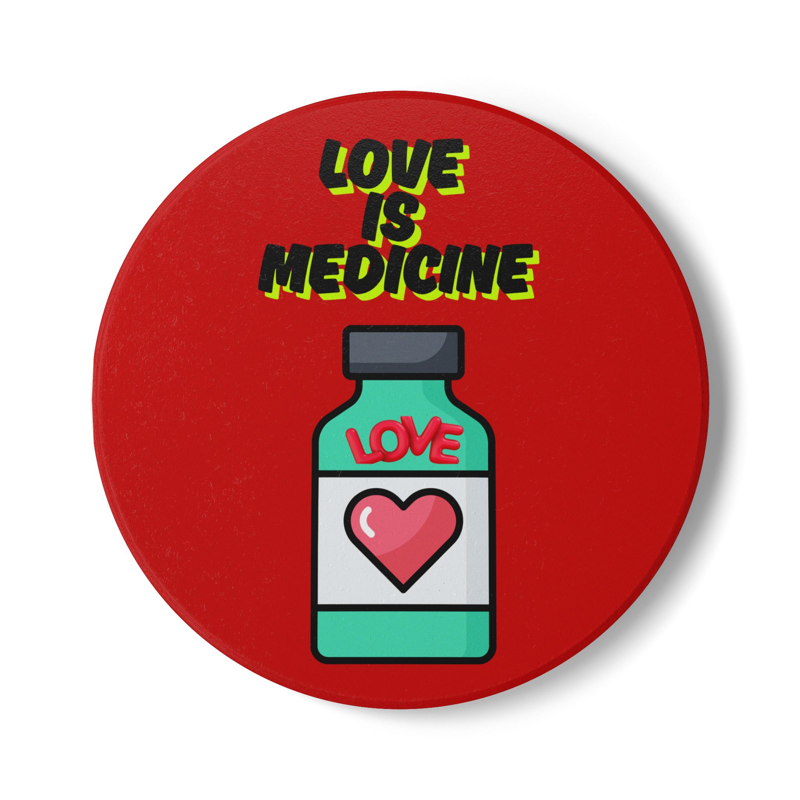 Love Is Medicine Ceramic Coaster – Inspirational Drinkware for Home, Kitchen Décor, and Thoughtful Gifts