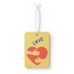 Whether you’re headed to work, picking up the kids, or taking time for yourself, this beautifully designed air freshener brings a message of peace into every mile. It’s a quiet comfort that hangs from your rearview mirror, reminding you that love is the strongest force on the road and in life.
