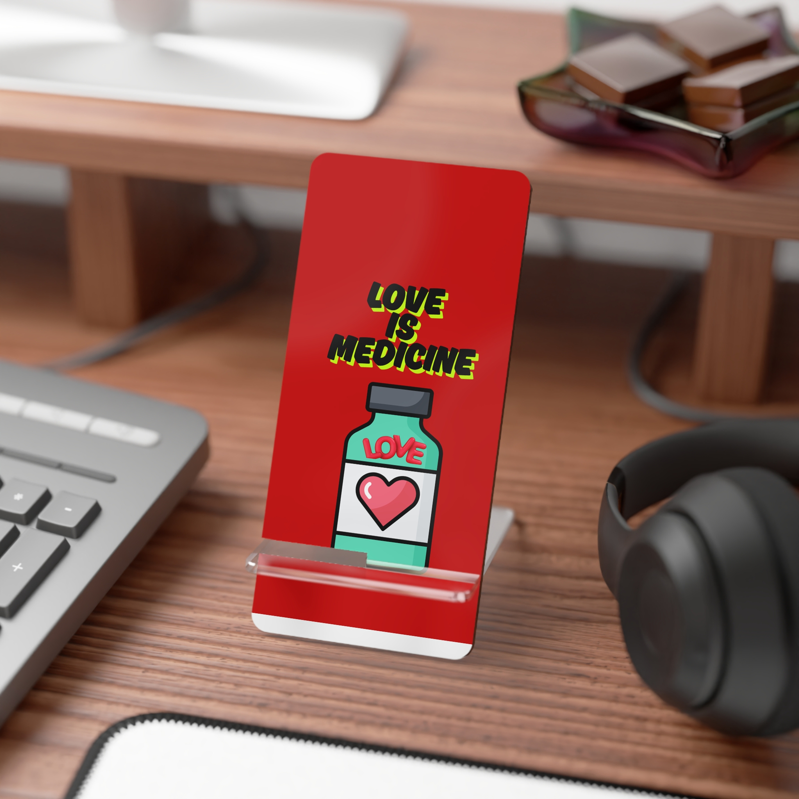 Practical, positive, and full of heart, the Love Is Medicine Mobile Display Stand is more than a phone holder, it’s a small gift that says, “You matter.”