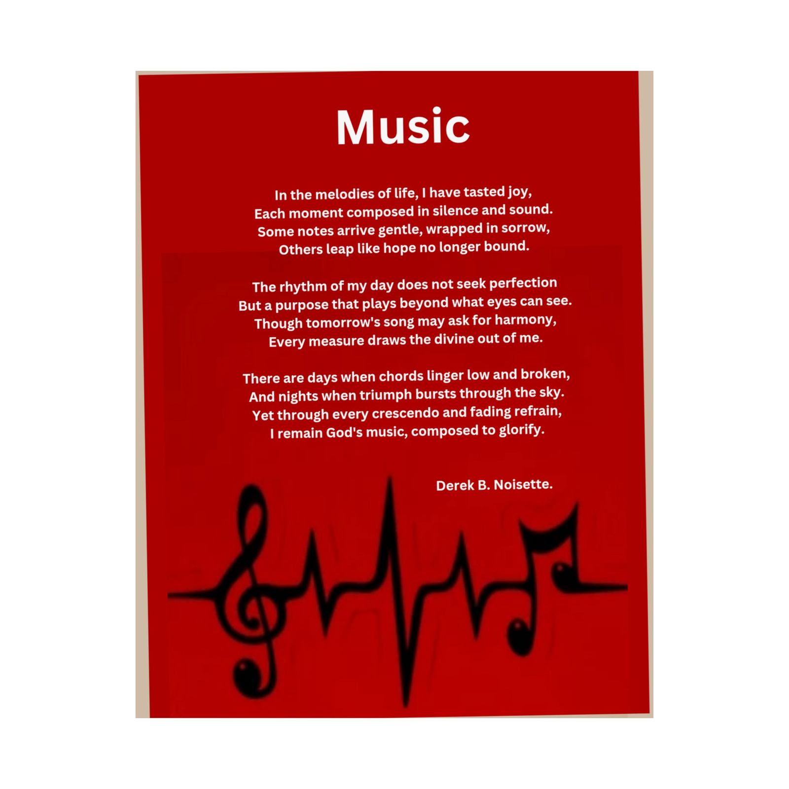 Whether placed in a prayer room, study area, bedroom, or sacred corner, this poster features the deeply moving poem Music, offering daily encouragement to live intentionally and glorify God through every high and low note.