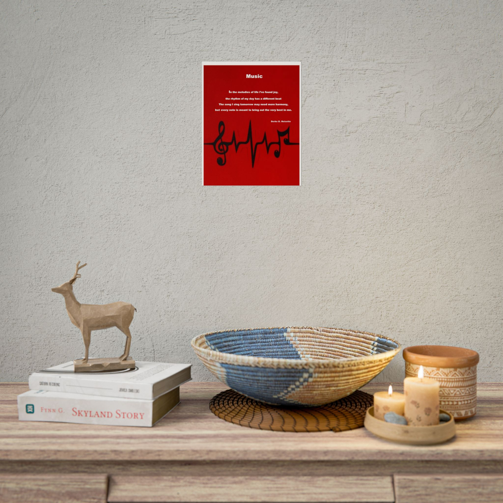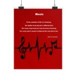 The artwork features flowing musical notes, symbolizing the rhythm of life, the movement of time, and the unique melody each person carries within their journey. Above the artwork is the poem “Music,” a thoughtful reflection on life’s changing rhythm and the beauty of becoming the best version of ourselves through each passing note of experience. Perfect for music rooms, creative studios, bedrooms, or quiet reading spaces, this poster serves as a reminder that every day adds a new measure to the song of life.