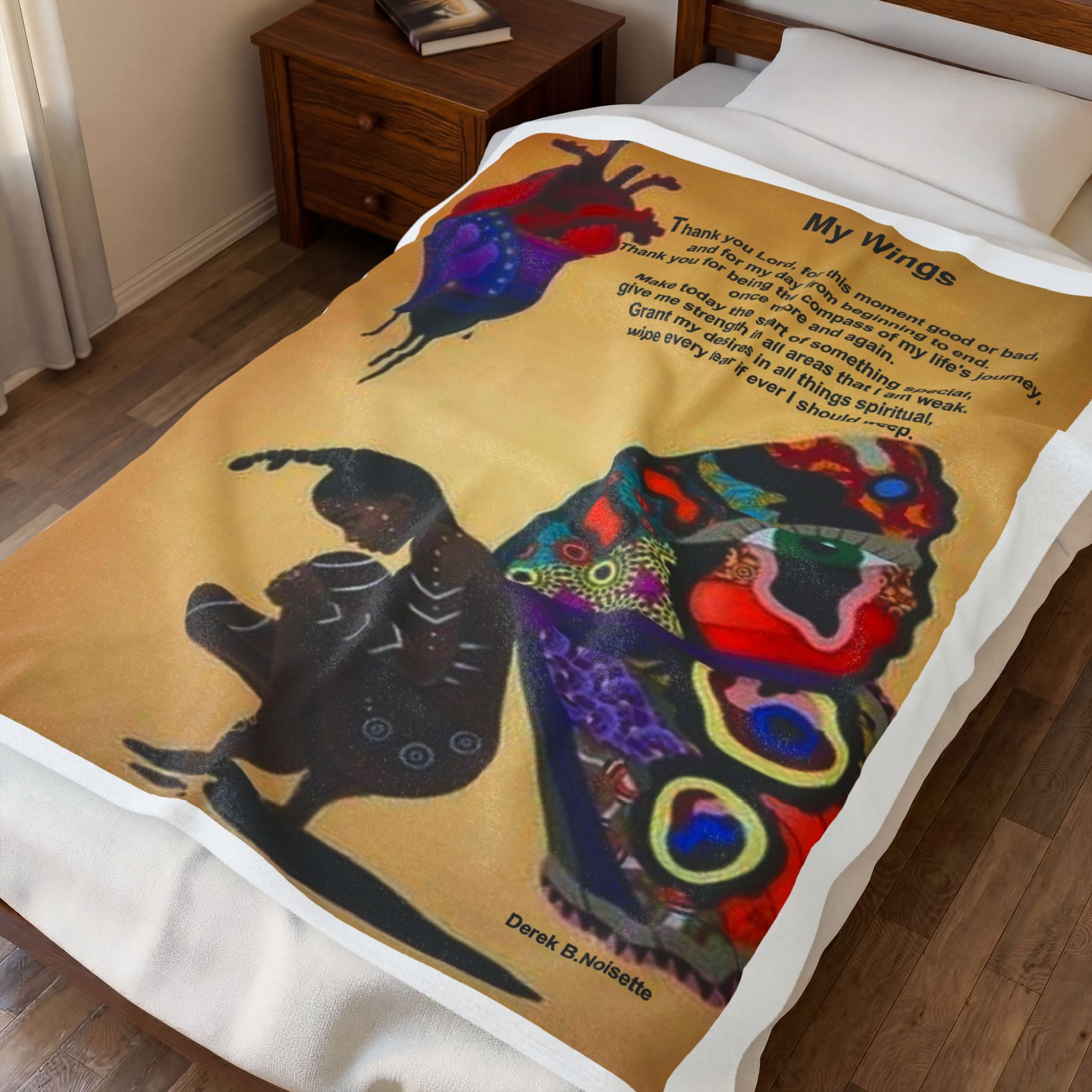 Wrap Yourself in Peace with the “My Wings” Velveteen Plush Blanket, A Faith-Based Comfort Gift from the Spiritual Desires Collection