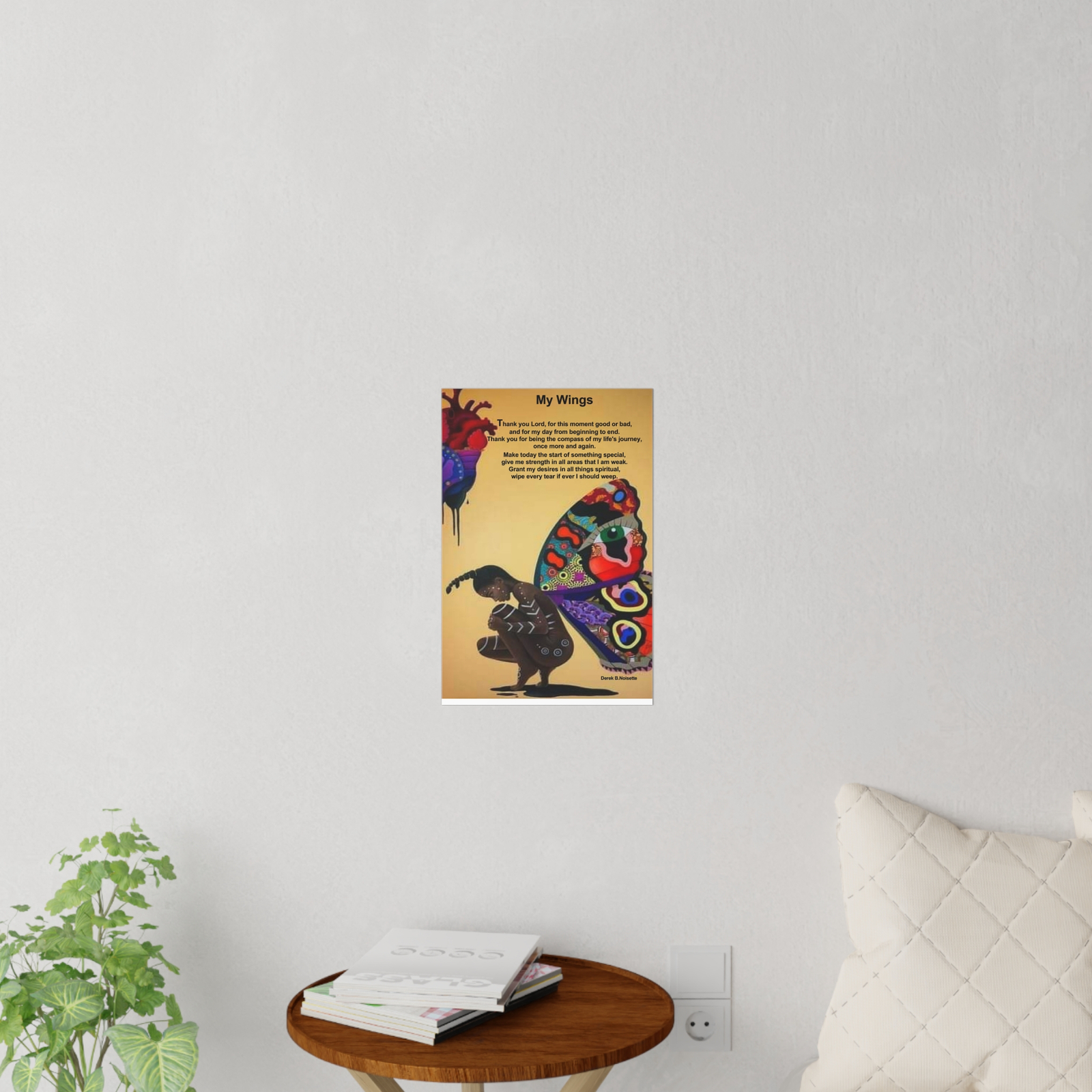 From the Spiritual Desires Collection by Derek B. Noisette, the My Wings Wall Decal is more than decoration—it’s a testimony of strength, a whisper of encouragement, and a beautiful reminder that your journey is guided by faith.