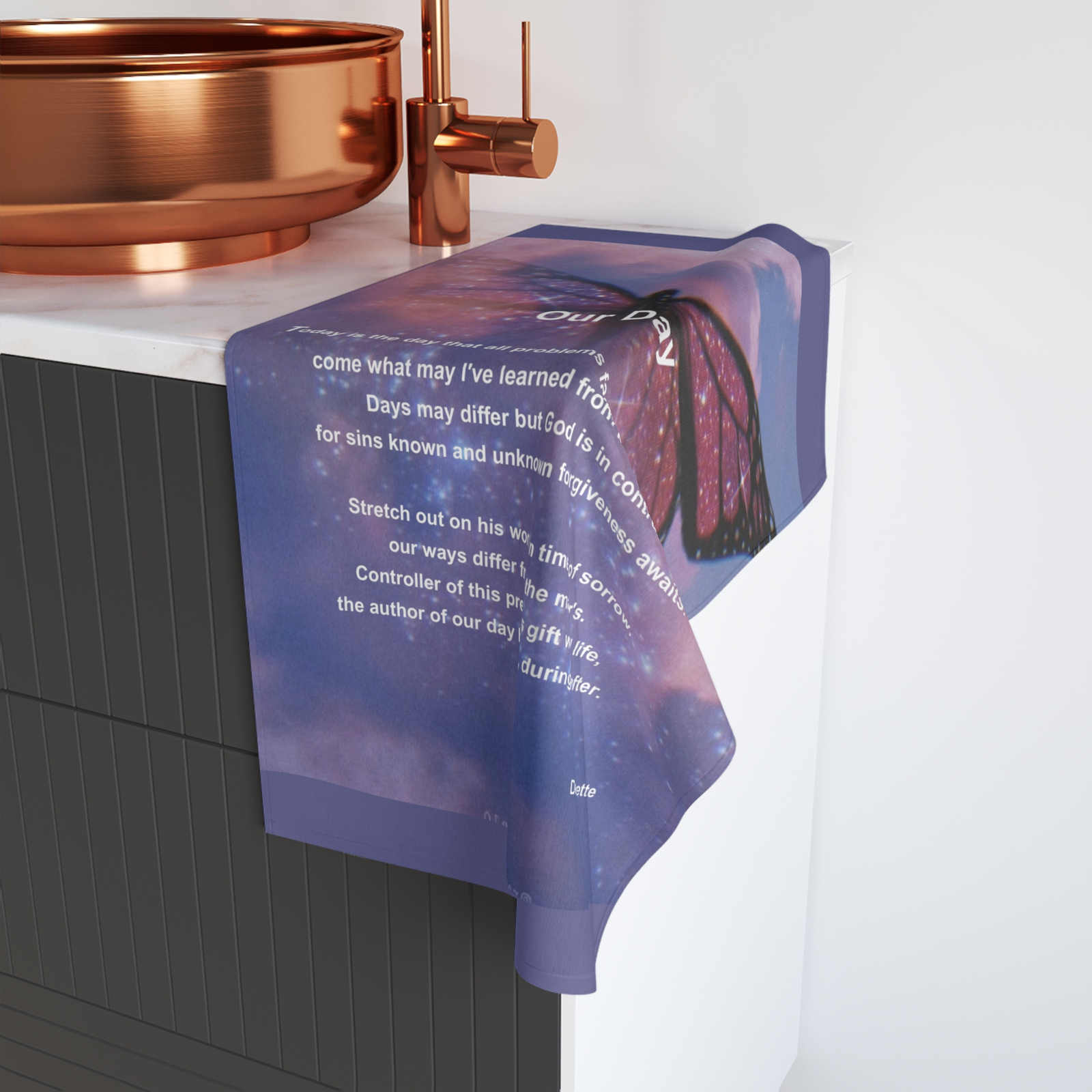 Faith-based hand towel with heartfelt poetry and uplifting imagery
