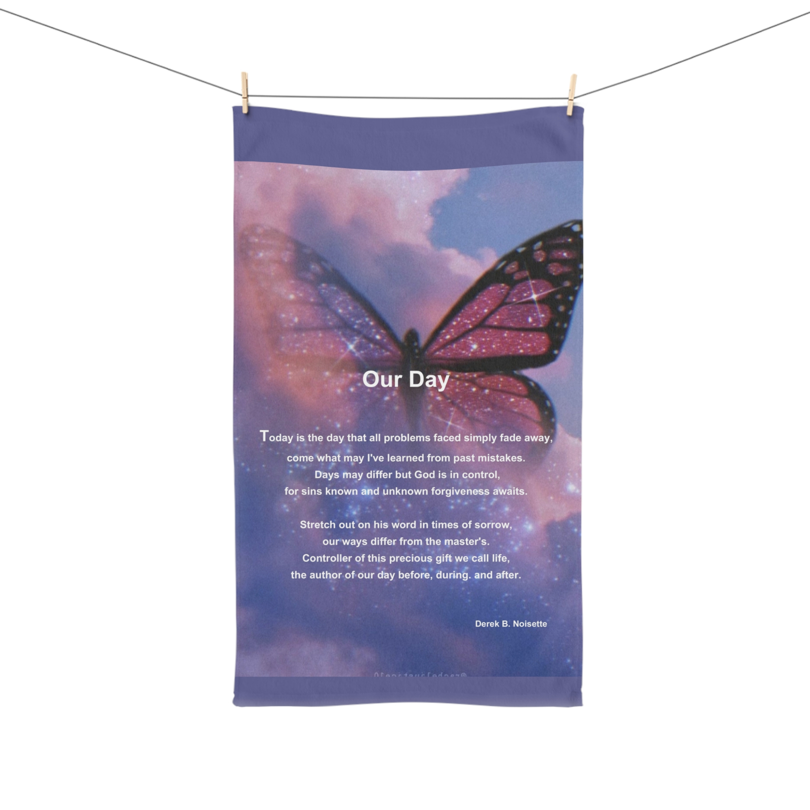 At the heart of this elegant towel is “Our Day,” a moving Christian poem that speaks to God’s grace, guidance, and the gift of a new beginning. Paired with soft, absorbent fabric and rich imagery, it offers not just function but inspiration for the soul—reminding you to walk with faith from morning to night.