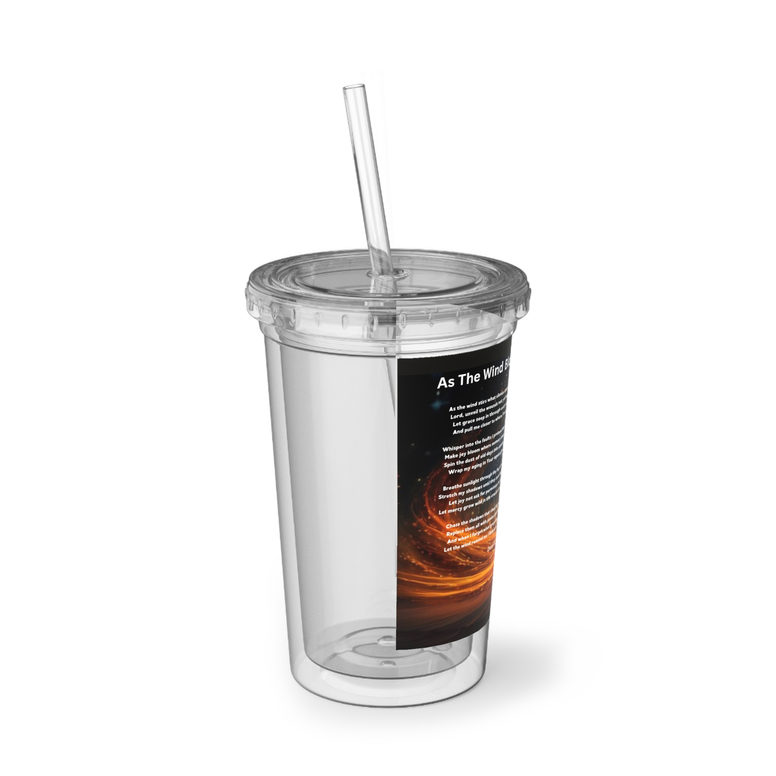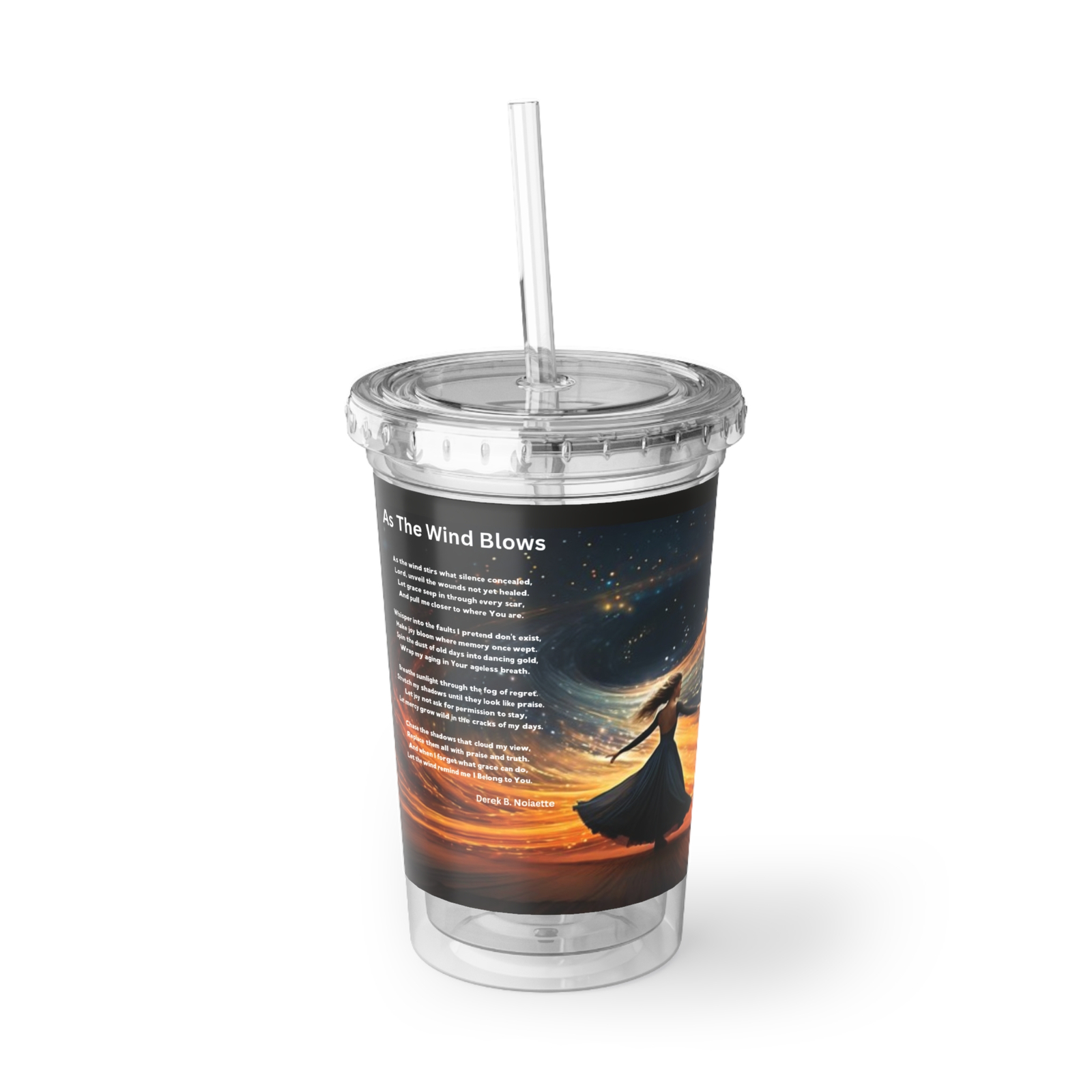 From the Praise 4 Collection, this acrylic tumbler captures a spirit unshaken and beautifully free. The artwork features a woman with arms lifted and waving in the wind, standing in full surrender beneath the radiant light of stars. She isn’t reaching, she’s already found. No fear. No doubt. Just presence and praise.