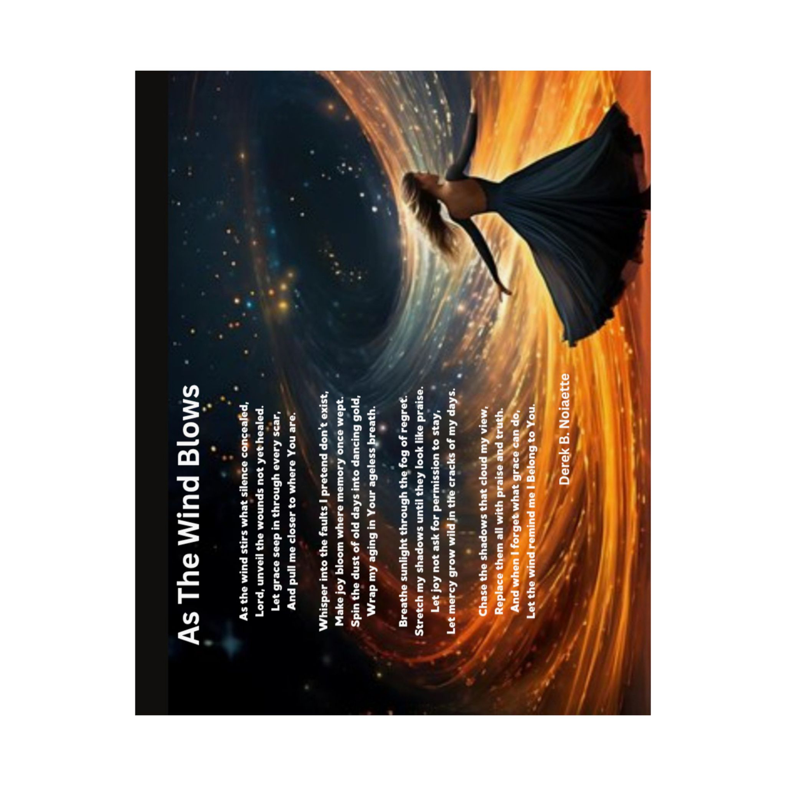 Printed alongside the image is the original poem “As the Wind Blows” by Derek B. Noisette, a moving reflection on grace, growth, and identity in the midst of transformation. With every glance, this piece gently reminds you to let go of fear, to trust what God is shaping through the unseen, and to breathe deeply into His presence.