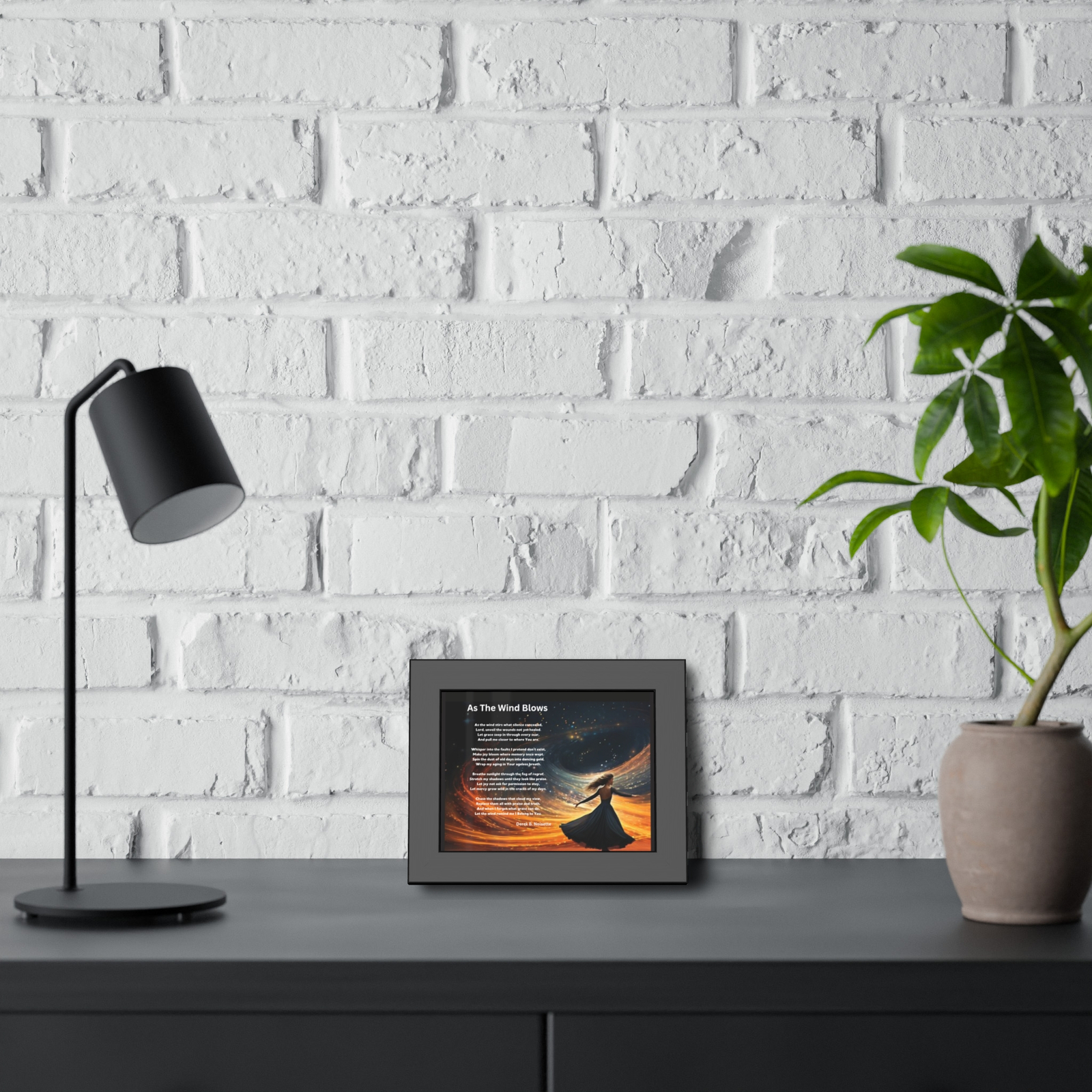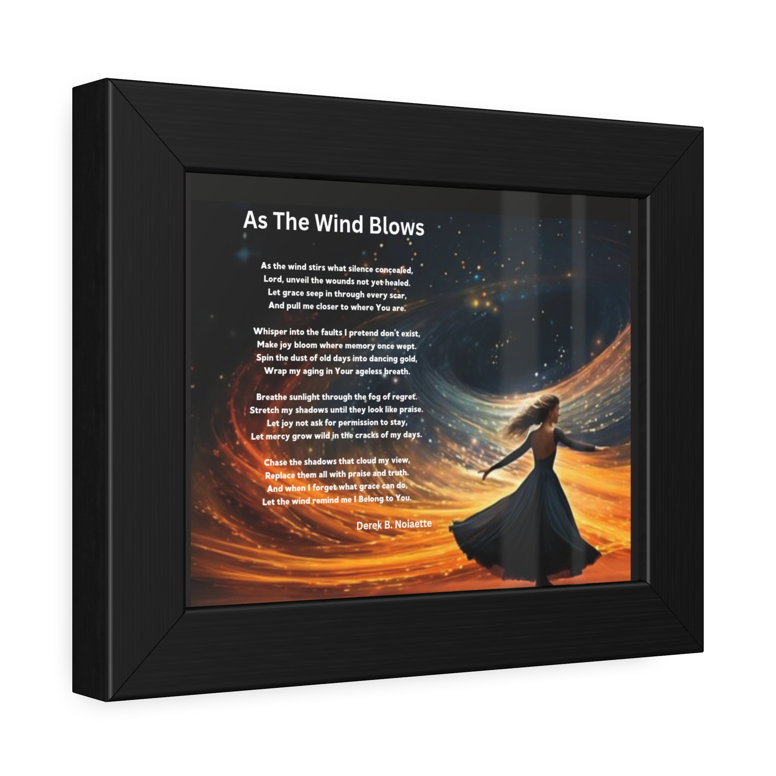 Printed beside the image is the original poem As the Wind Blows by Derek B. Noisette. With each line, the poem breathes life into the still moments, giving voice to vulnerability, hope, healing, and trust in the unseen hand of God.