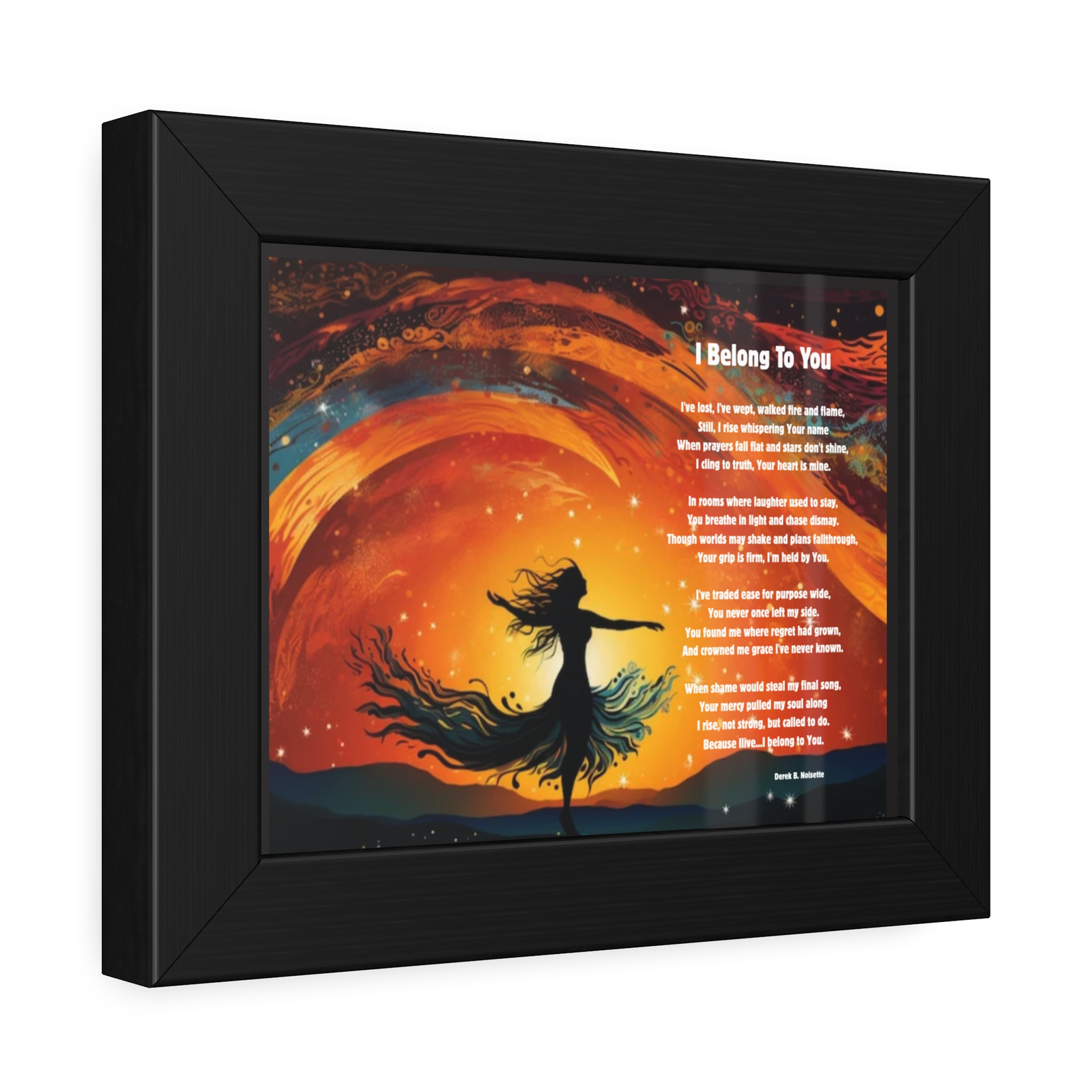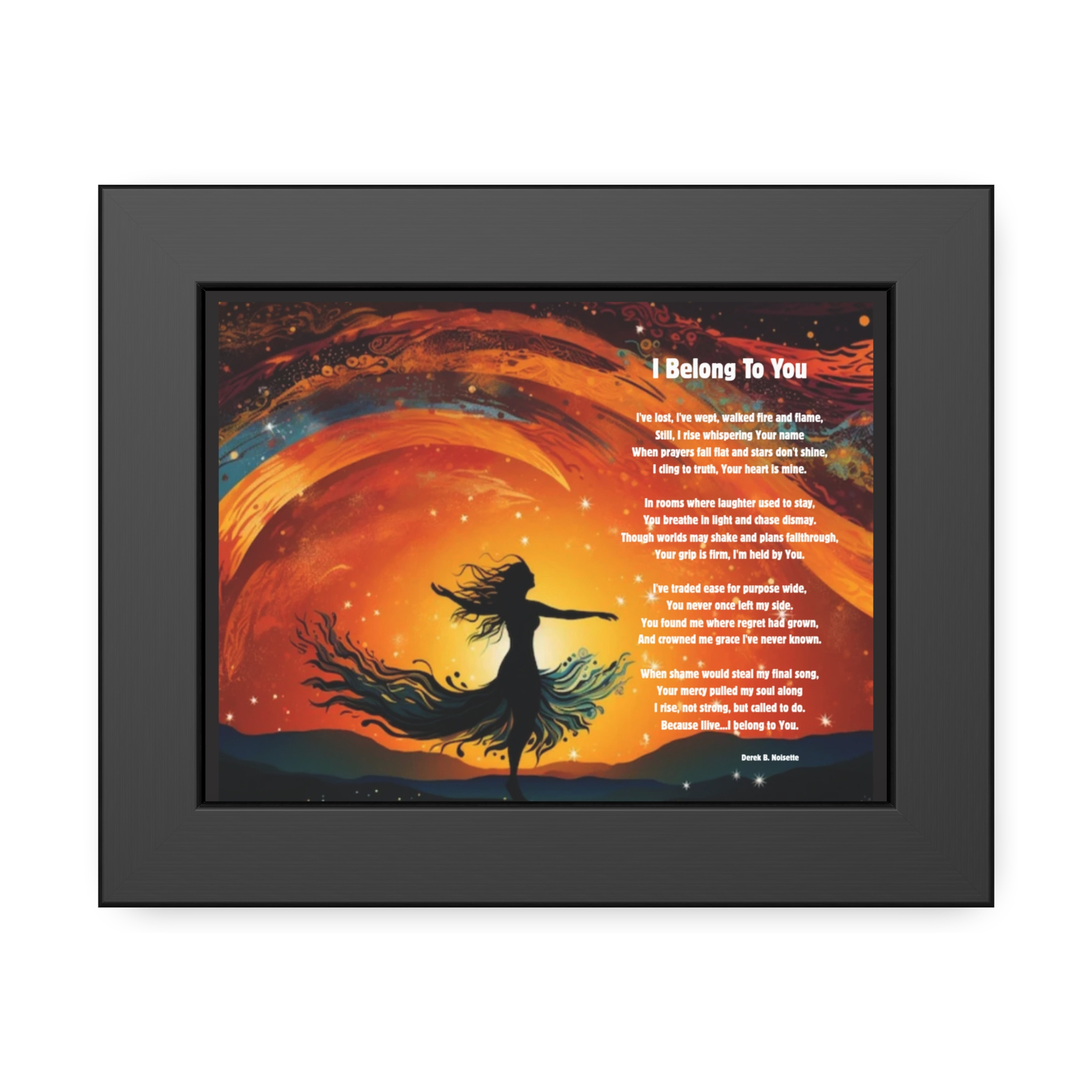 Printed beside this powerful image is the full poem I Belong to You by Derek B. Noisette, a declaration of belonging through storms, silence, and sacred moments of grace. The words echo the cry of every soul who has walked through the fire but stayed rooted in divine love.