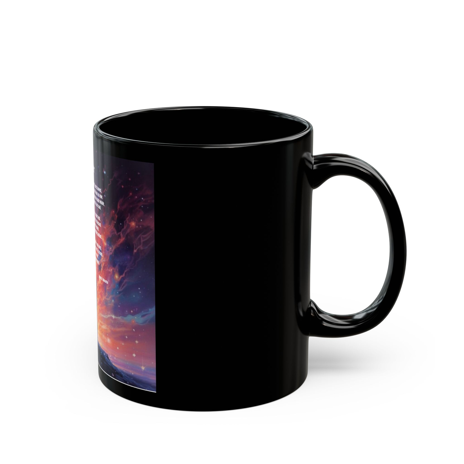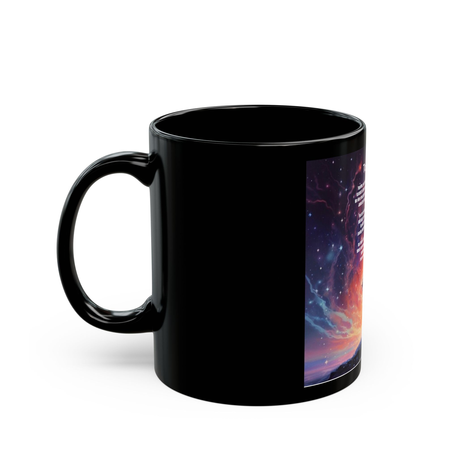Crafted from glossy black ceramic with a high-resolution, fade-resistant print, this mug is both beautiful and built to last. It is available In 11 oz and 15 oz sizes, and it is BPA-free, lead-free, microwave safe, and dishwasher safe. For best results and to preserve the design, hand washing with mild soap is recommended.