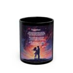 From the Praise 8 Collection comes a black ceramic mug that does more than hold your morning coffee, it holds a reflection of covenant, grace, and gratitude. The artwork wraps around the mug with a radiant image of a husband and wife standing and facing each other, caught in a divine whirlwind of color. Above them, rising like morning light, are the words of the poem Together by Derek B. Noisette written in the sky. This moment captures not just their connection to each other, but their shared connection to God, who brought them together.