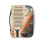 Celebrate the beauty of surrender and the joy of worship with the Praise Him Inspirational Bible Cover. Featuring a striking silhouette of a man standing by still waters, arms lifted in reverence, framed by gentle floral scenes on both sides, this cover captures the soul’s purest posture, praise.