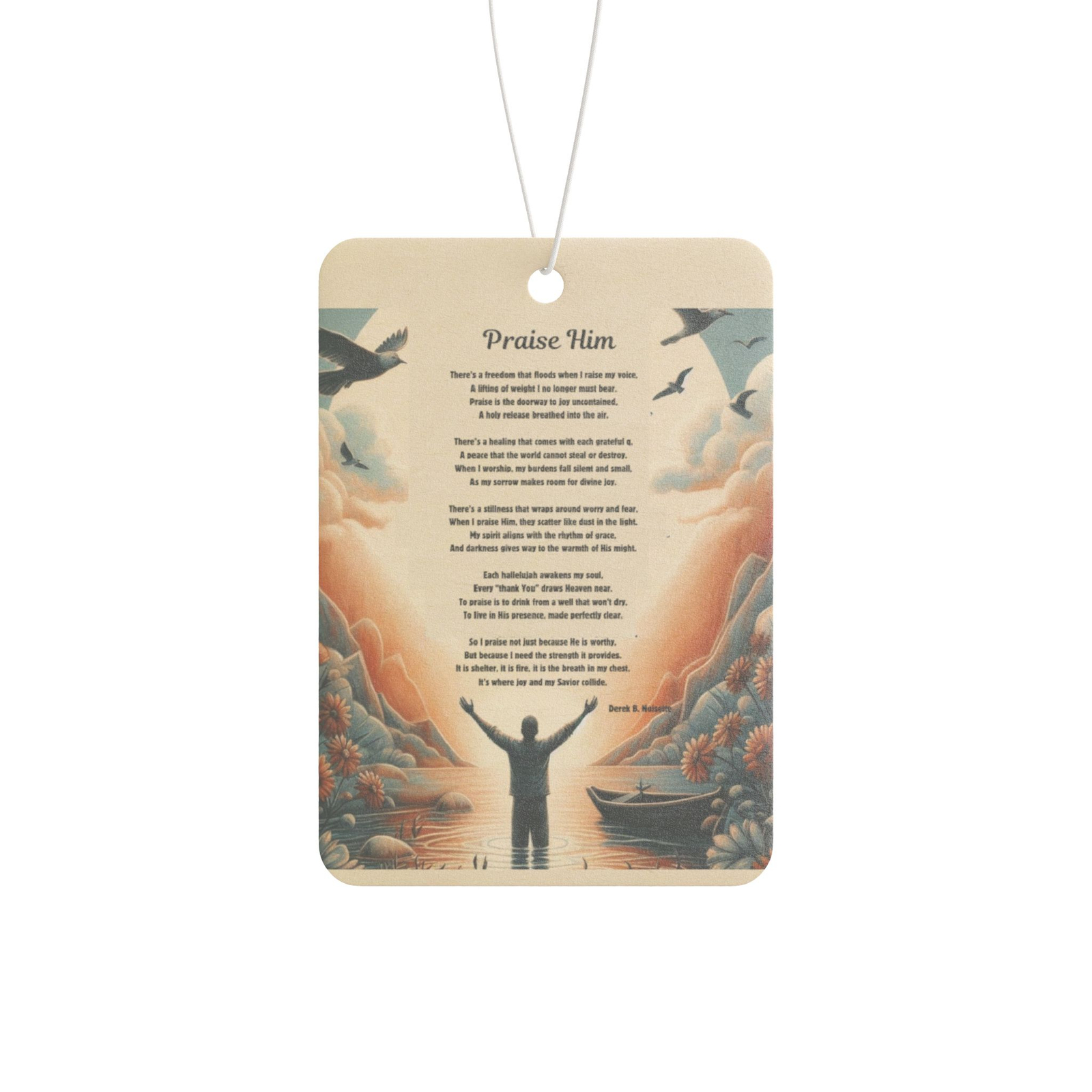 Whether you’re heading to Bible study, navigating a long commute, or simply running errands, this uplifting accessory fills the atmosphere with refreshing scent and the soul-stirring words of the poem “Praise Him.” With a double-sided design and elegant presentation, it transforms your car into a moving sanctuary of worship and reflection.