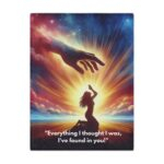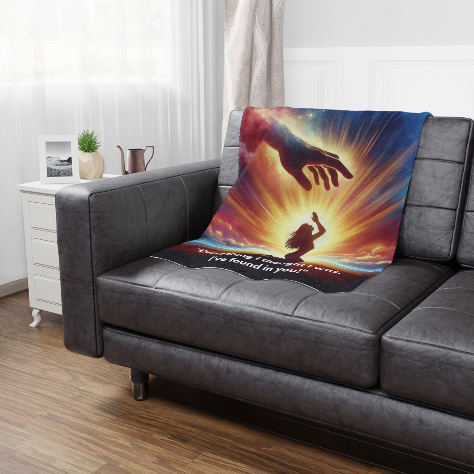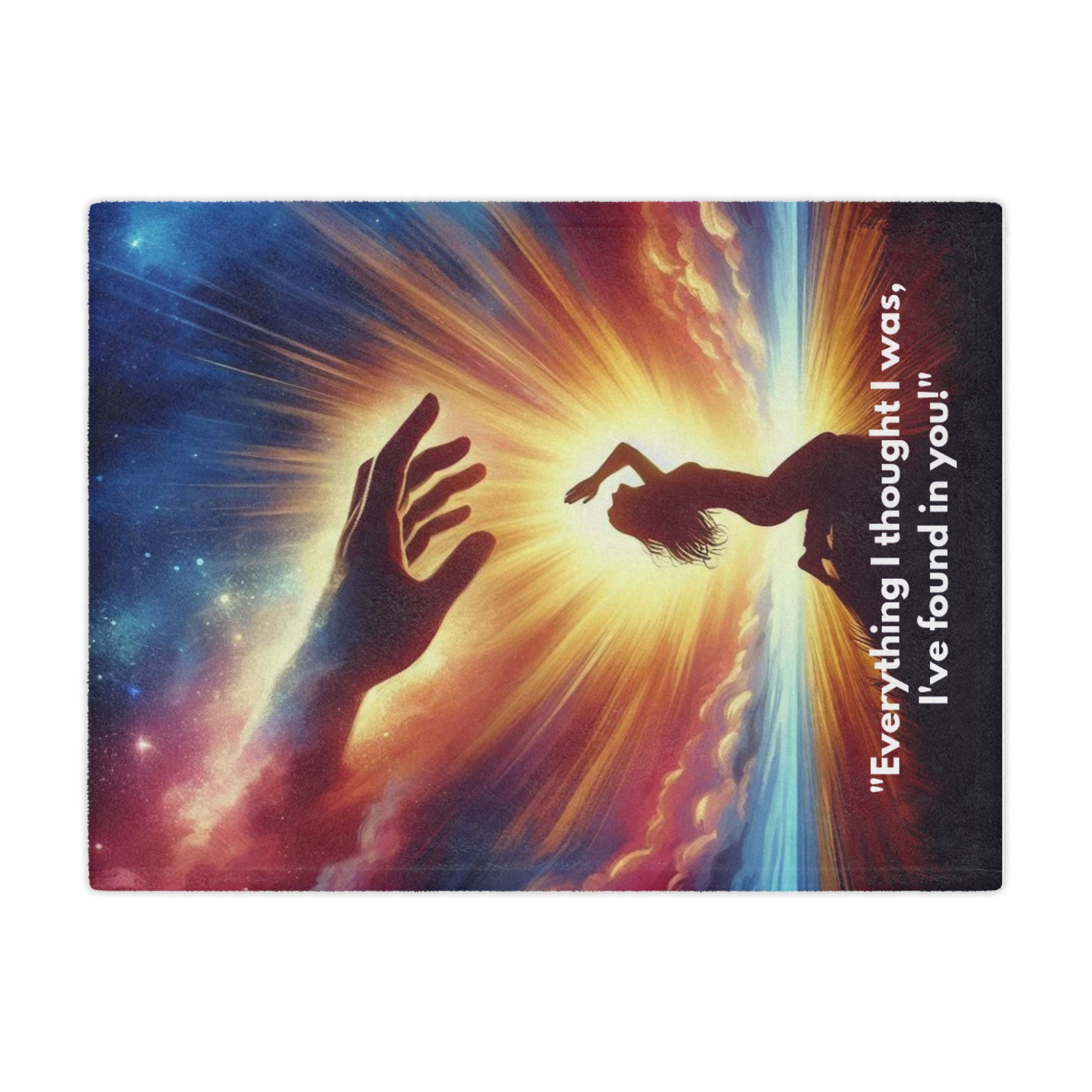 Wrap yourself in comfort and divine assurance with this beautifully designed Minky Blanket from the Praise Collection. Featuring the powerful image of a woman kneeling in prayer with a majestic hand reaching down from the clouds above, this blanket serves as a visual expression of surrender, trust, and heavenly connection. At the bottom, the words gently remind: “Everything I thought I was, I’ve found in You.”