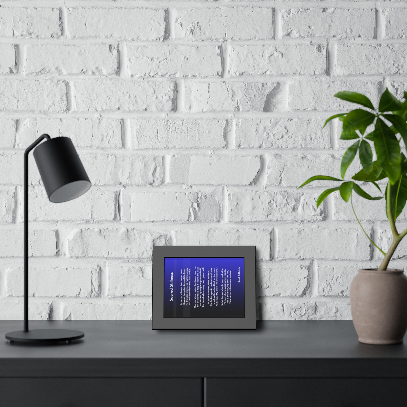 Sacred Stillness is more than a framed poem, it’s a visual prayer. Let it remind you daily that God’s presence isn’t always in the thunder, but often in the quiet. Let it remind your heart where peace truly lives.
