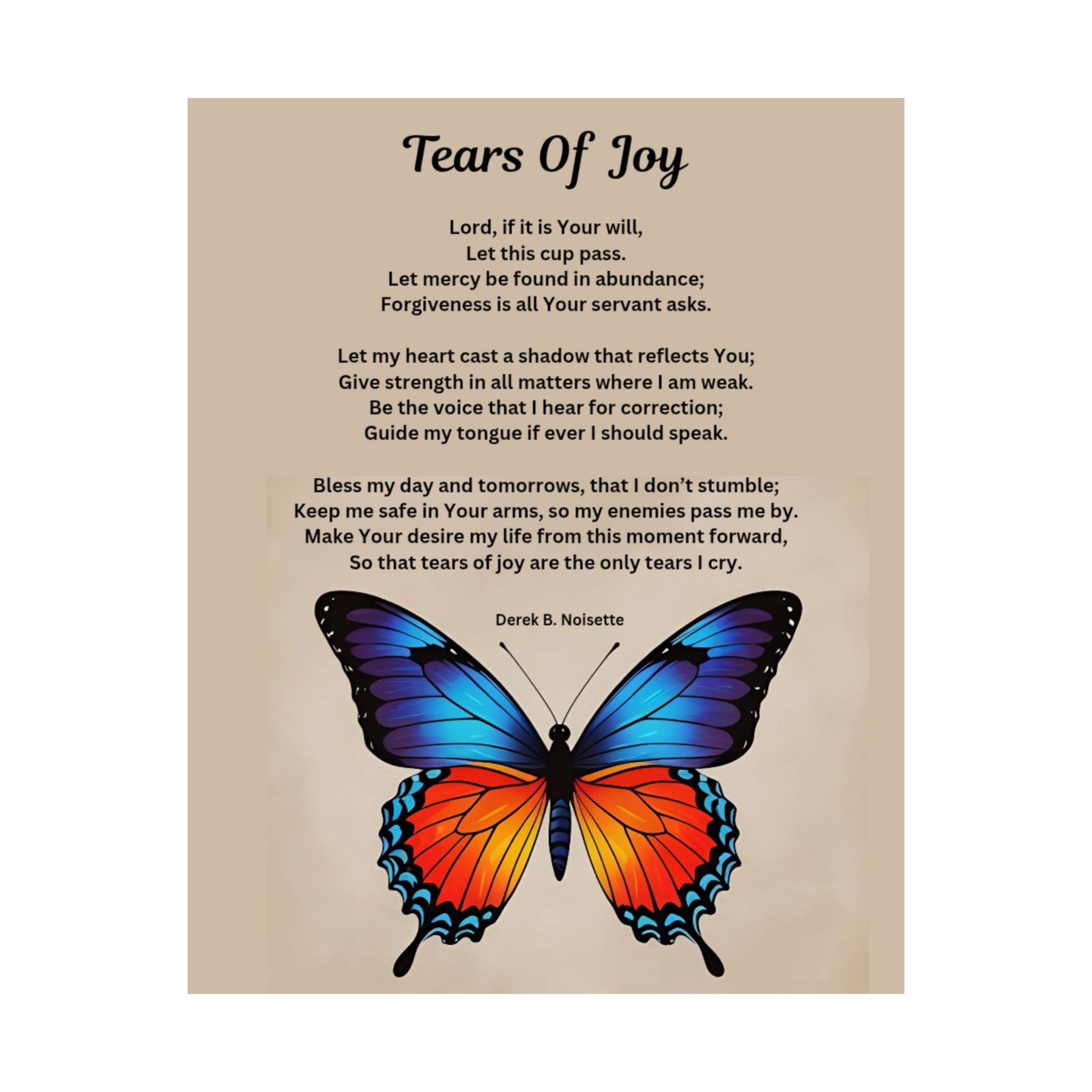 Perfect for prayer rooms, bedrooms, reading corners, or home offices, the poster features the powerful and deeply personal poem Tears of Joy. Printed on museum-grade paper with a smooth matte finish, it invites you to pause, breathe, and remember that even your tears are known by God.