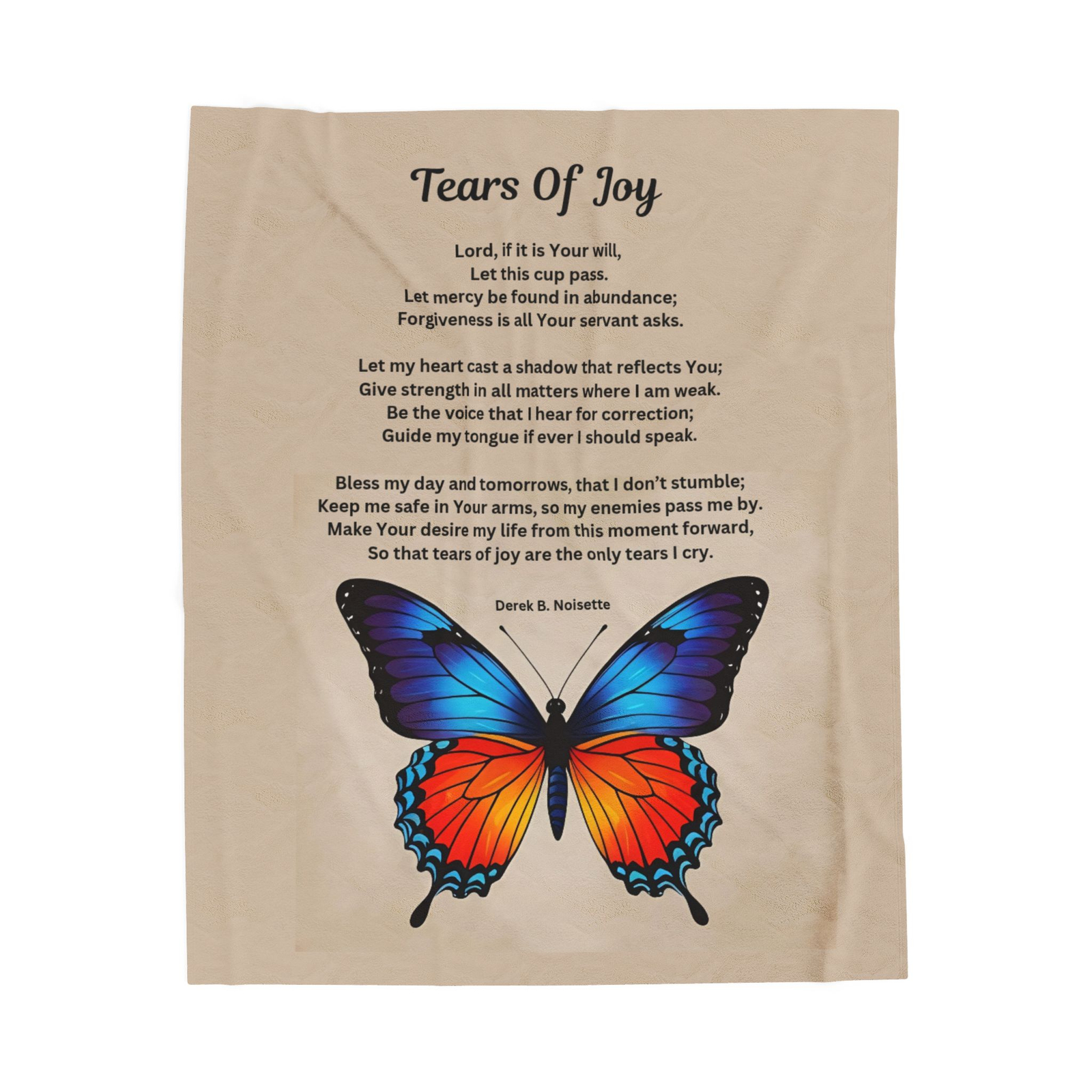 Crafted from ultra-soft velveteen polyester and printed in rich, high-resolution detail, the blanket features the inspiring and prayerful poem Tears of Joy. This soul-stirring message serves as a gentle reminder that God’s mercy is abundant and His love never fails. Whether draped over your shoulders during prayer, wrapped around you during journaling, or laid across your lap during restful evenings, this blanket becomes a sacred symbol of spiritual connection and divine covering.