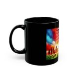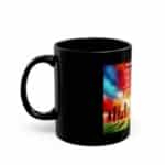 Crafted from glossy black ceramic with a high-resolution, fade-resistant print, this Praise 9 mug is available in 11 oz and 15 oz sizes. It is microwave safe, dishwasher safe, BPA-free, and lead-free. To protect the brilliance of the artwork, gentle hand washing with mild soap is recommended.
